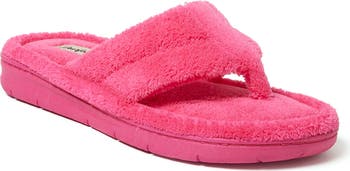 Featuring easy on/off designs alongside a pair of durable indoor/outdoor outsoles, these thong slippers are the perfect pick for on-the-go relaxation! Each slipper is fitted with a multi-density cushioned insole with gel-infused memory foam for a cloud-like feeling on your feet. Plus, increased heel and arch cushioning adds extra comfort for the ultimate in lounging style. Plush slippers made of soft and breathable terry fabric keeps your feet dry and comfortable. Perfect slipper to slide on when climbing out of the shower or for a day at the spa with the girls. With an indoor/outdoor outsole, the bottom of these thong slippers features molded thermoplastic rubber for added durability and constant support whether you’re on the go or at home. These cozy slippers are easy to clean so you can always have a fresh, clean pair. Gentle machine wash cold and air dry flat.