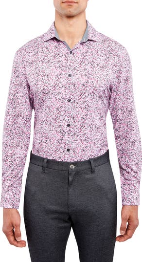 Stretchy, moisture-wicking fabric keeps up with you all day in this floral dress shirt that also resists wrinkles and travels well.