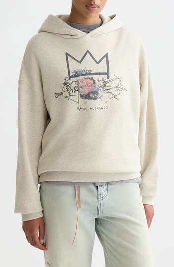 Inimitable Basquiat imagery lends artful presence to an all-cotton hoodie featuring a graphic enhanced with embroidery.