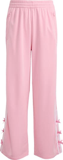 The Cheshire Cat and adidas lend their signature stripes to these kid-size track pants sweetened with dainty bows.