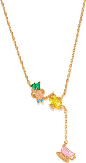The Hatter dishes up a mad cup of tea at the center of this playful necklace beaming with cubic zirconia.