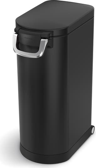 Robust lock-tight handle keeps food in and pets out. Silicone gasket forms an airtight seal so food stays fresh. Convenient scoop attaches magnetically under the lid. Extra-large capacity (36-44 lb/16-20 kg) is ideal for storing dog or pet food, or other bulk items like flour, rice, sugar or charcoal.