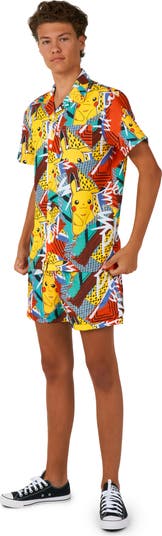 Lightweight and colorful, this Pokémon camp shirt pairs with matching shorts to keep your kid comfortable and ready to play indoors and out.