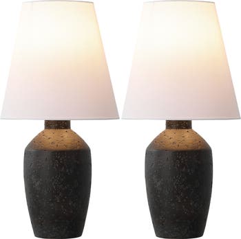 Make a bold statement with the classic silhouette of these very modern lamps. Heavy resin bases in a ginger jar shape are topped with tall, cone-shaped linen shades. The minimalist matte finish adds contrast to a bedroom, office or living room.