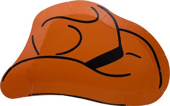 Calling all cowboys! Our "Yeehaw" collection has everything you need to gear up for your next rodeo. These dinner plates are shaped like a classic cowboy hat. These plates are brown in color with black detailing. Grab your buckaroos and get ready for some chow!