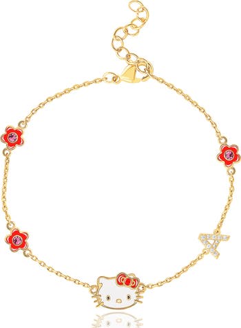 This officially licensed bracelet features a stunning initial charm adorned with sparkling cubic zirconia stones. Crafted with attention to detail, this bracelet showcases the iconic Hello Kitty charm with a personalized twist.