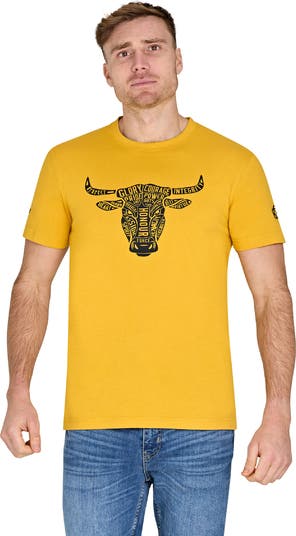 Become a virtuous farmer with our Young Farmers Word Bull Head T-Shirt. Made of 100% cotton jersey for soft, comfortable wear. This high-quality t-shirt features a vibrant yellow color and a bold, bright bull head print with inspiring words. Regular fit with the emblem of the Young Farmers Club embroidered on the sleeve. Join the club and show off your passion.