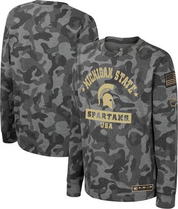 Show off your Michigan State Spartans pride with this OHT Military Appreciation Dark Star T-shirt from Colosseum. It features a sublimated camo design, but there s no hiding your love for the Michigan State Spartans thanks to the printed graphics. Proudly rep your favorite college team in a more comfortable tee.
