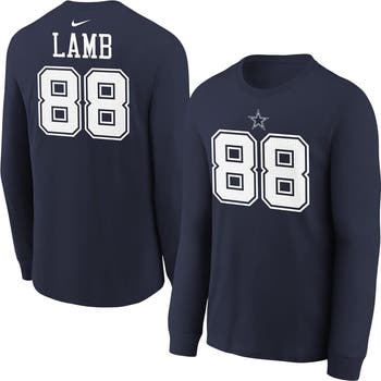 Gear up your young Dallas Cowboys fan with this CeeDee Lamb Player Name Number Long Sleeve T-Shirt from Nike. The screen-printed Dallas Cowboys logo and CeeDee Lamb s number are displayed on the front, leaving no doubt who your young fan is rooting for on game day. Plus, with its soft, 100% cotton construction, this tee keeps your young fan comfortable whether they re at the game or watching from home.