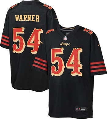 This San Francisco 49ers 2025 Rivalries Collection Game Jersey from Nike is an ode to a fanbase that moves more like family. The authentic look features an all-black design with classic saloon-style numbers and gold accents representing the franchise s storied legacy. Breathable mesh panels combined with durable, smooth tricot fabric keep young fans dry and comfortable as they support Fred Warner.