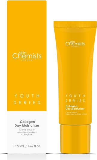 skinChemists Youth Series % Collagen Day Moisturiser ml For Soft, Smooth Youthful Skin – Your Daily Radiance Booster Struggling with dull or sagging skin? Our Youthful Glow Collagen Day Moisturiser is expertly formulated to enhance natural collagen production, giving you a firmer, more youthful appearance. This powerful blend hydrates deeply while protecting your skin barrier, leaving it revitalised and nourished. What It Does: Supports collagen production for youthful elasticity Hydrates softens for smoother texture Protects firms with barrier-enhancing properties Lightweight and fast-absorbing, perfect for daily use The Solution: Dull skin? Experience revitalisation and a radiant glow. Sagging skin? Firm and smooth for a youthful look. How to Use: Apply generously to clean, dry skin each morning for all-day hydration and protection. Why You ll Love It: Suitable for all skin types, including sensitive Vegan, cruelty-free free from parabens, sulfates artificial fragrances Experience the difference today! Apply our Collagen Day Moisturiser to clean, dry skin in the morning or evening after cleansing for softer, smoother, and protected skin that supports natural collagen production.