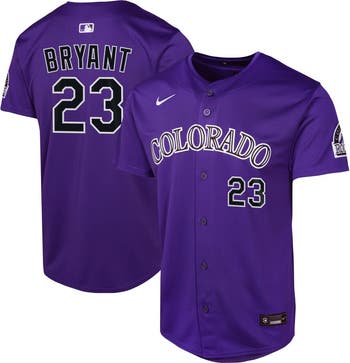 This Kris Bryant Alternate Limited Player Jersey is inspired by the on-field uniforms of the Colorado Rockies and keeps your young fan comfortable beyond the last out. The lightweight and comfortable stretch mesh fabric of this Nike jersey features twill details for an authentic look. An innovative Vapor Premier chassis allows for more flexible movement and teams up with Dri-FIT technology to deliver exceptional sweat-wicking power.