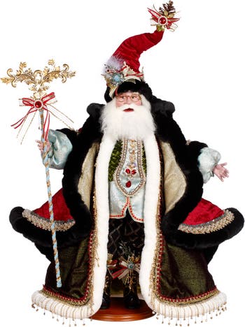 The Mark Roberts Yuletide Santa is a beautifully handcrafted collectible featuring rich fabrics, intricate detailing, and signature whimsical charm. His expressive face and elaborate costume capture the warmth and magic of the holiday season. Designed with heirloom-quality craftsmanship, this Santa brings festive elegance to any Christmas display.