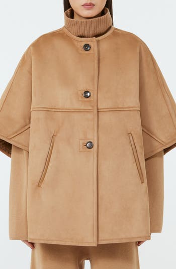 Max Mara s unparalleled elegance is especially apparent in their iconic capes, and this camel-hued style lined with a luxe blend of camel hair and silk is no exception.