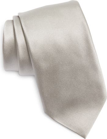 Bring upscale polish to business or formal attire with an Italian-made tie crafted from lustrous silk in a solid hue that looks like liquid silver.