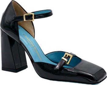 The Zete Pump features a modern square toe design and a character-filled heel, making it a stylish and updated mary jane. Its unique shape and bold heel add modern touches to this classic style.