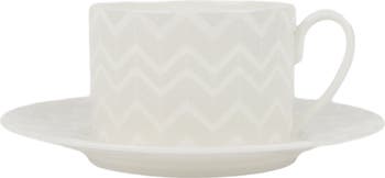 Zigzag White Set Of 2 Tea Cups Saucers