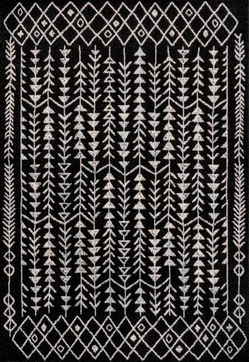 Inspired by vintage Moroccan rugs, our modern version is power-loomed with a short pile. Classic Berber motifs are woven in cream on a field of black; the mingled threads recall traditional handwoven rugs. Add some Bohemian style to your home with this easy-care rug.
