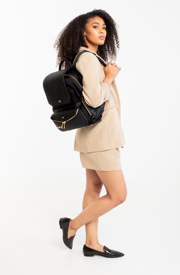 A 13-inch laptop backpack made for women who lead. This elegant work bag blends functional organization with elevated style, featuring thoughtful compartments, a trolley strap for travel, and a detachable 5-way wear crossbody for seamless transitions from work to weekend.