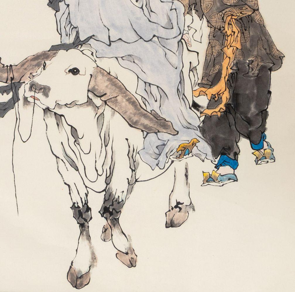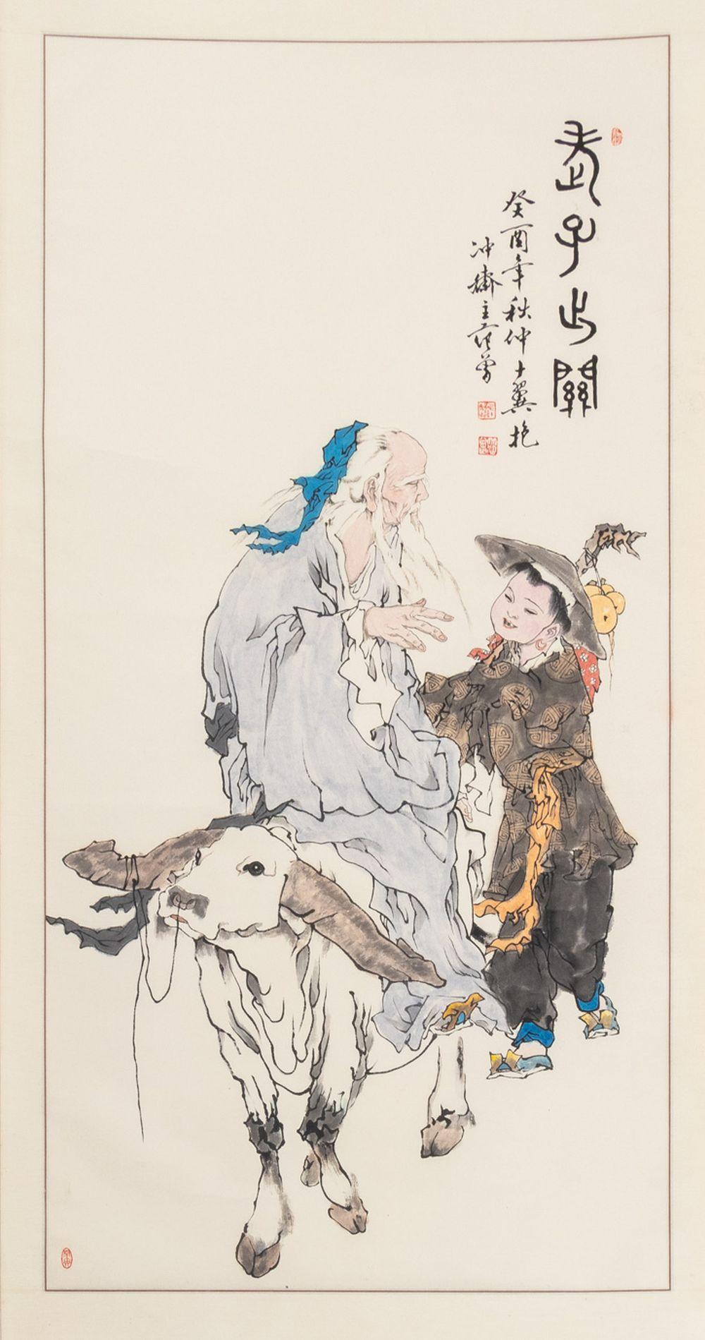Fan Zeng (Chinese, b. 1938), "Lao Tzu's Exit Map", Ink on Paper, 1993, calligraphy and chop seal marks upper right and chop seal mark lower left. Image: 54.25" H x 27.25" W; whole: 83.25" H x 35" W. Provenance: From a New York City Collection.