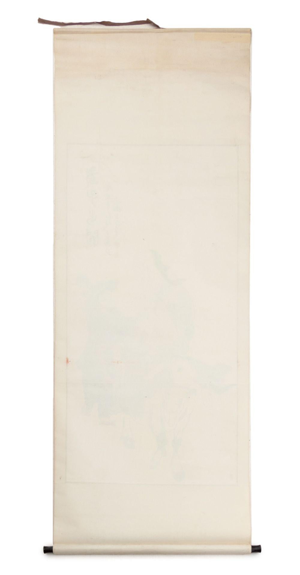 Exquisitely painted with delicate line work and a subdued color palette, this Chinese scroll painting is an early 20th century reproduction of a famous...