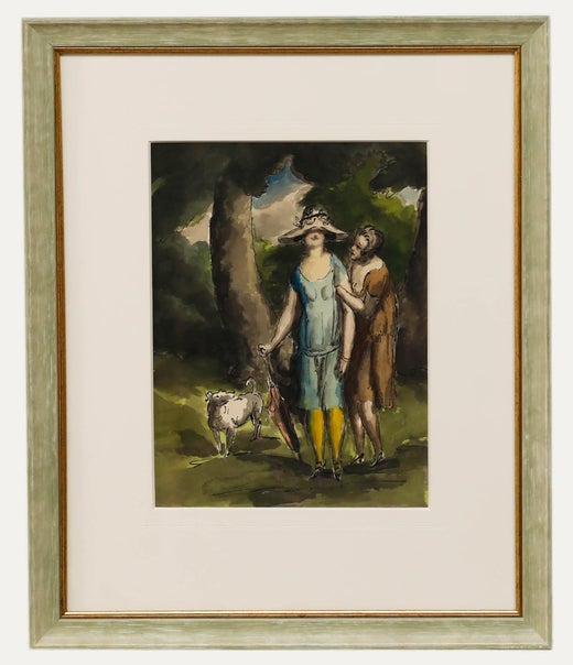 Harold Hope Read was born in Greenwich in 1881 and later lived in Lewisham in London, Brighton and Tunbridge Wells, where he passed away in 1959. During his years in Tunbridge Wells, where he moved to in the 1930s, Hope Read lived an avant-garde lifestyle with his live-in housekeeper, life model and mistress, who we know only as Hilda. Here the artist became known as the Bohemian of Tunbridge Wells and his work is now acknowledged as the precursor of Edward Ardizzone (1900–79). It is from Hilda, that the present collection of works originates, after being passed down through Hilda's family after her death. Hope Read’s involvement with his patron, Charles Lambert Rutherston and fellow artists William Orpen (1878–1931) and Sir William Rothenstein (1872–1945) has been credited for inspiring the series of paintings and drawings he titled High Life. In this series, Hope Read depicts the wealthy and famous clientele of his colleagues in a lavishly detailed drawing style. Through this style, he conveyed the opulence of the members of high-society he encountered, including their luxurious costumes and grand interiors. Hope Read regularly submitted works to the Royal Academy's Annual Exhibition and exhibited works at the Alpine Gallery, the New English Art Club, the Royal Institute of Painters in Watercolours and the National Society of British Artists.