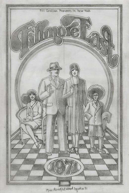 Original 1971 Fillmore East Art program cover pencil drawing Rock and Roll