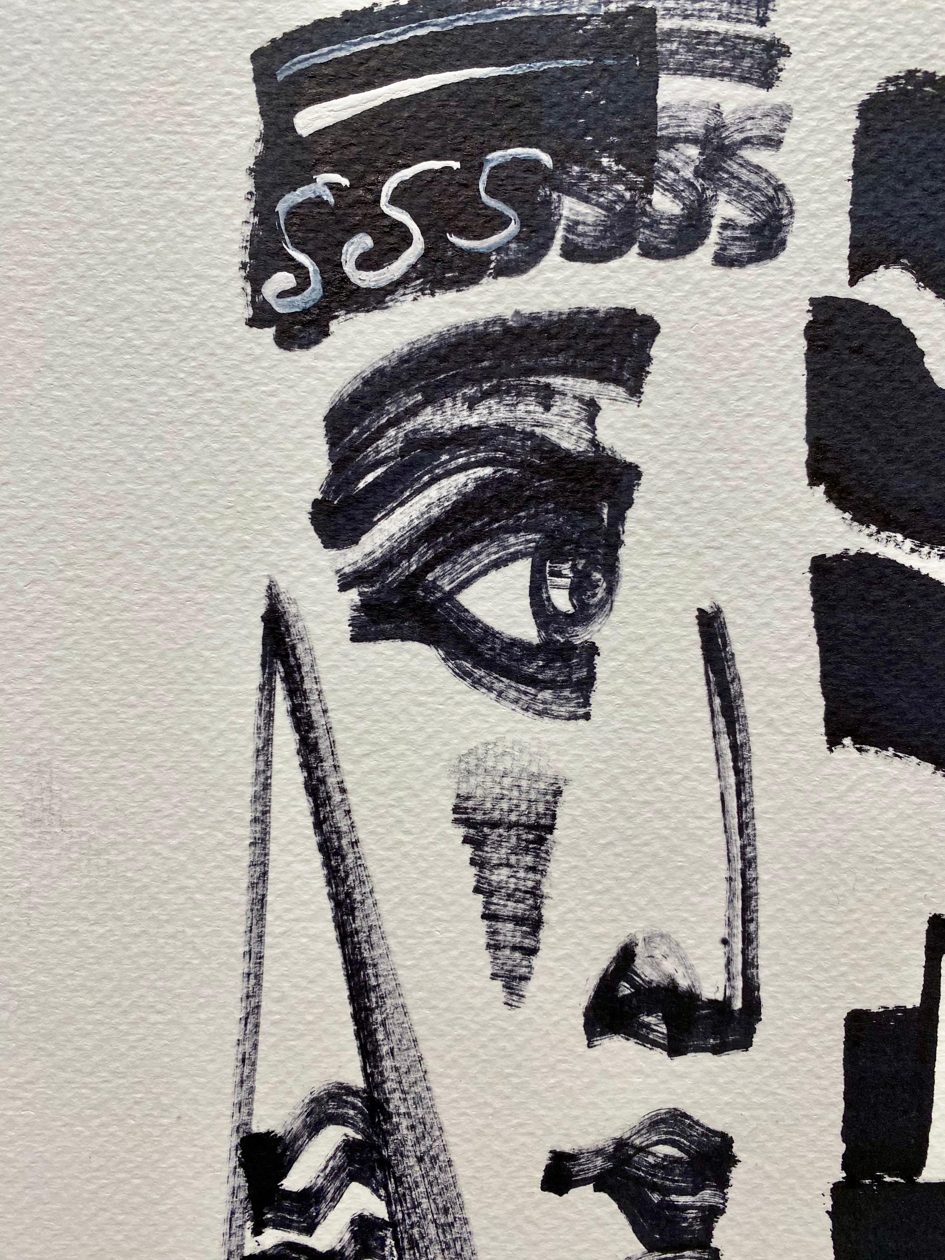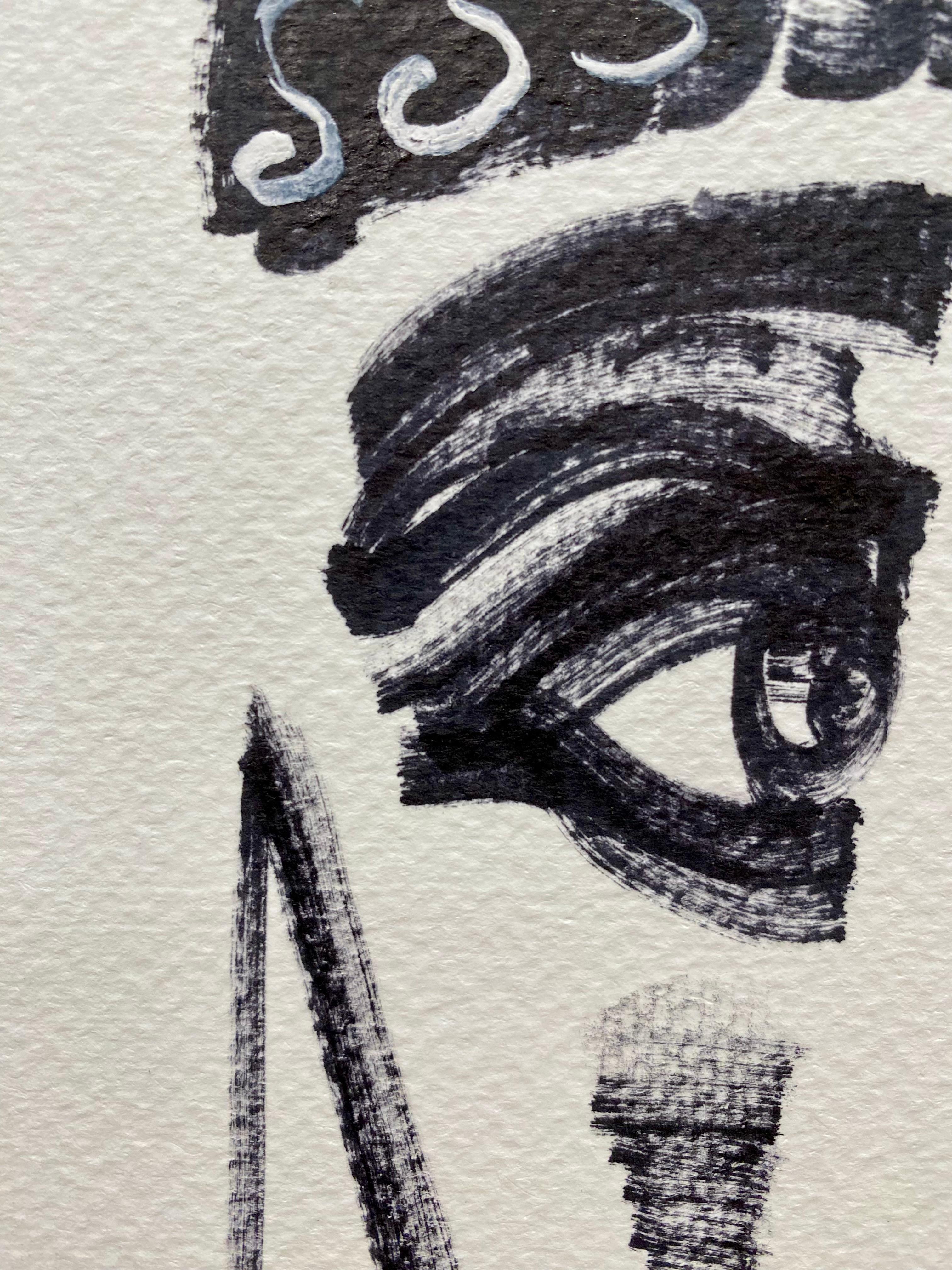 “Limited Atonement” by artist Mary Spencer is a 30 x 22.25 inch contemporary ink drawing on paper. The drawing is signed and dated on the front.