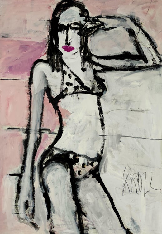 acrylic and watercolor pencils on paper. In my pictures I try to give an insight into the mysterious world of women. They are naked women in all their beauty. They all have something secret and attractive about them. A starting point for the works are often my personal memories and experiences as well as observations of reality, but also photographs that I find in newspapers and magazines. These serve as templates for drawings and paintings. I interpret the photographically accurate representation into subjective painting. :: Mixed Media :: Expressionism :: This piece comes with an official certificate of authenticity signed by the artist :: Ready to Hang: No :: Signed: Yes :: Signature Location: bottom right :: Paper :: Landscape :: Original :: Framed: No