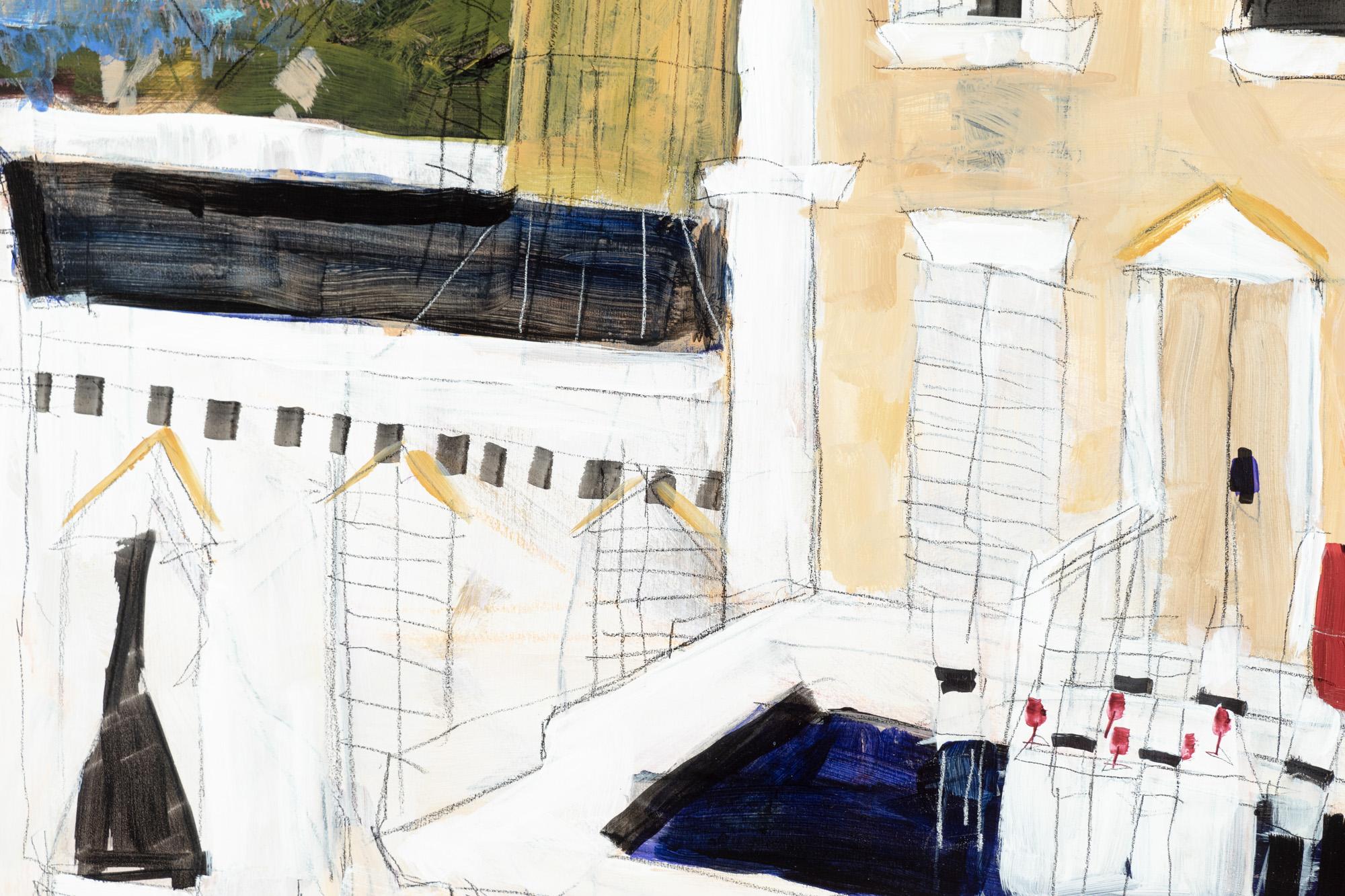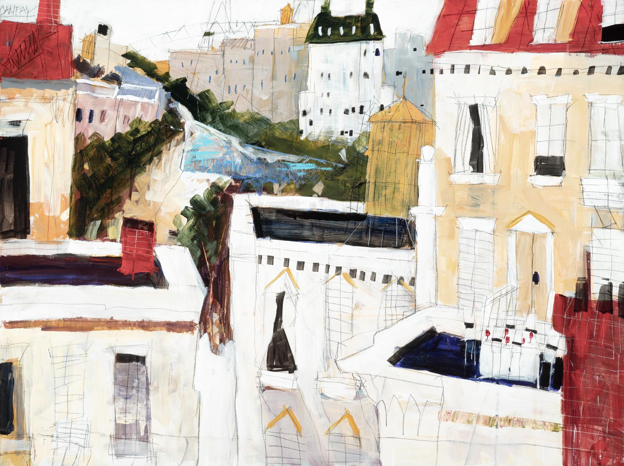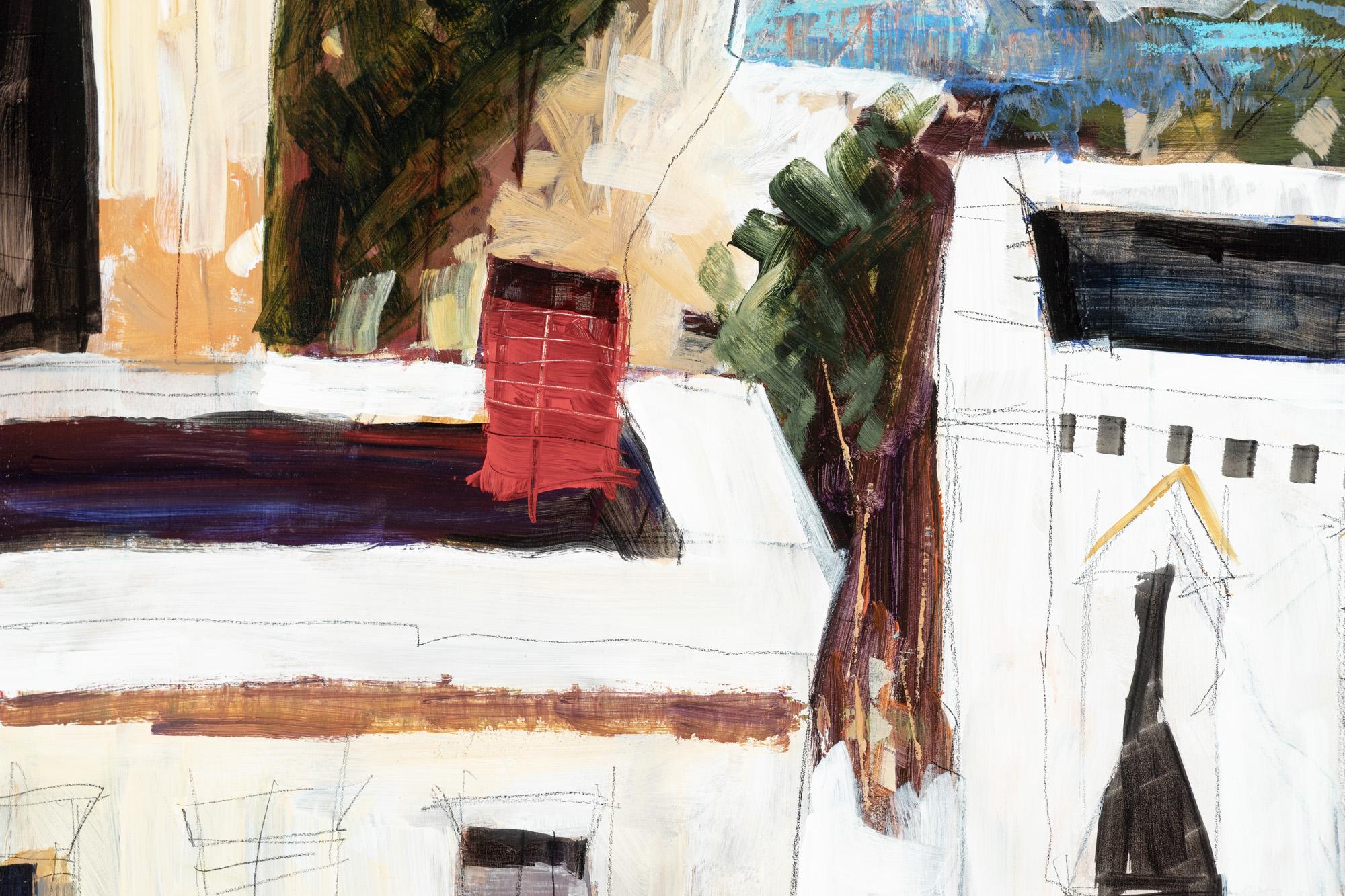 Dennis Campay"Stacks" Contemporary Cityscape Mixed Media on Panel with Frame