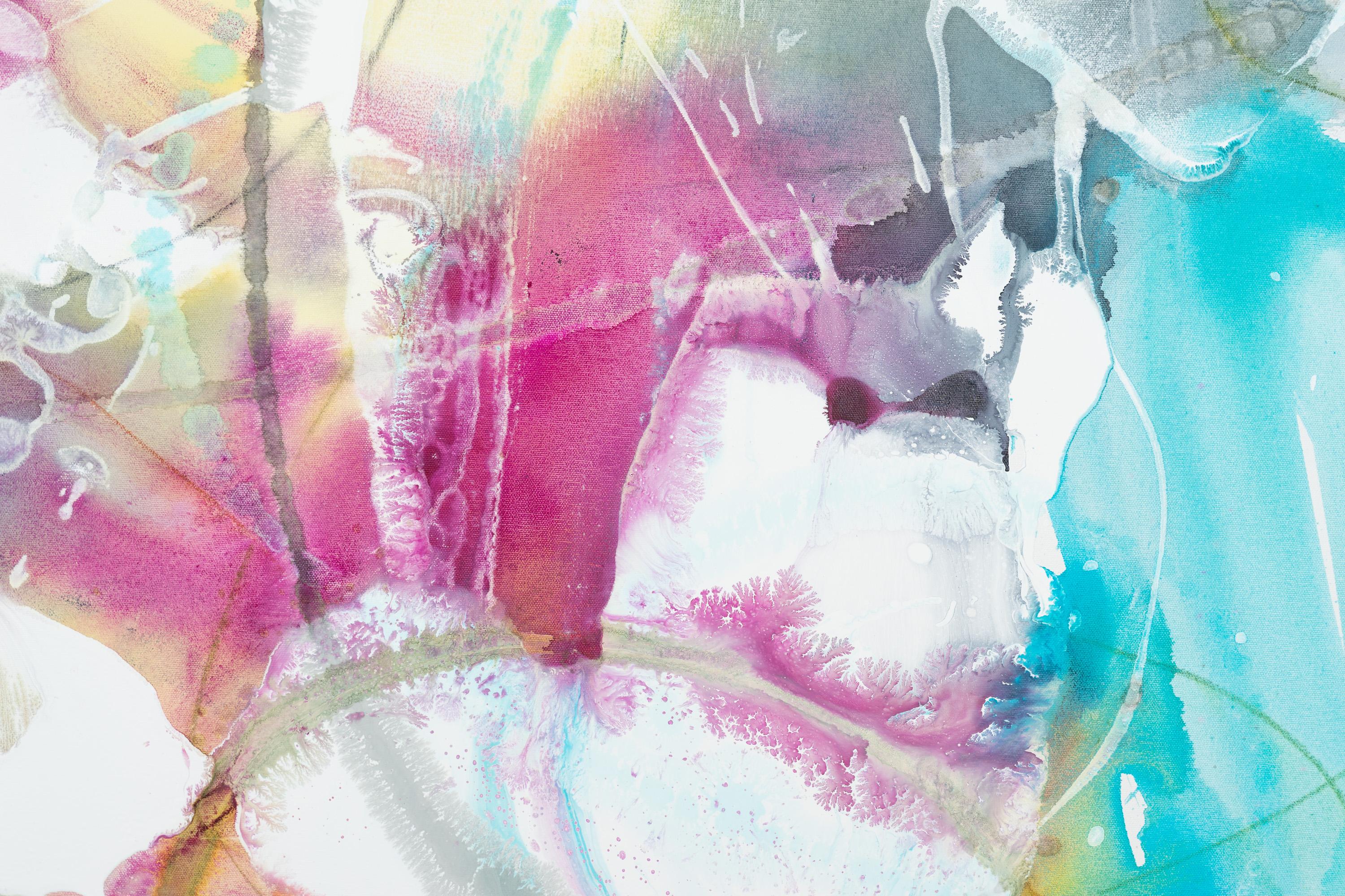 to form the composition. She uses graphite and oil pastel to create drawn elements. Mark making plays a big role in the language of Barber’s work while also acting as a resting place for the eye. Translucency, texture, and layers are created in epic proportion in Barber’s paintings and are the result of her varied experimentation process. These organic bursts of energy inspired by nature's movement are the result of adding water and other mediums to the materials. Leaning towards calm, soothing organic application over the vigorous brushstroke, Barber applies more distinct edges with oil paint to pronounce the gems in the underlying layers. "My paintings are layered bursts of energy inspired by nature's movement, fusing the present with memories. Form, line and color fall into a sea of emotion. Shapes and reflections drift into volumetric configurations. I feel this effect captures nature's essence; forceful texture and gentle luminosity." - Liz Barber
