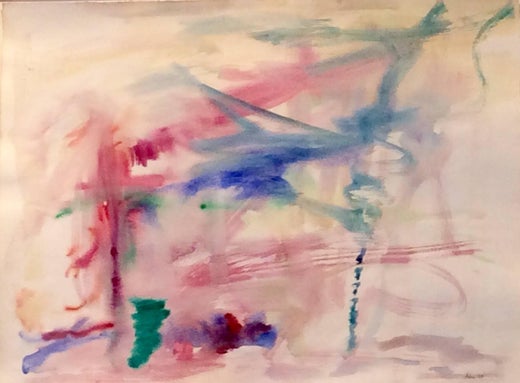 Gorgeous oil and watercolor on paper by abstract expressionist artist Adine Stix. Beautiful shades of pink, purples, cobalt blue with s hint of orange cover the paper to create the h...
