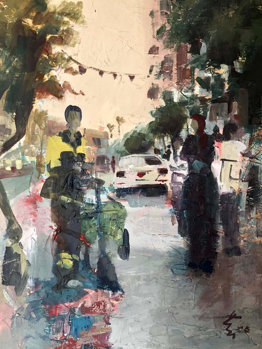 "Gezirah" Figurative Painting 39" x 47" inch by Ahmed Dafrawy