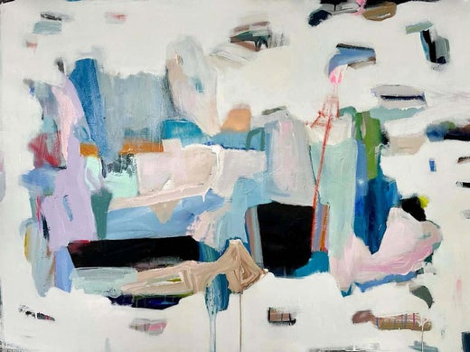Annie King's masterful arrangement of shapes and colors creates a captivating visual experience, where the eye is continually drawn to new details and nuances. Layers of blues, greens, and purples add depth and complexity to the composition, inviting viewers to immerse themselves in its beauty and mystery.