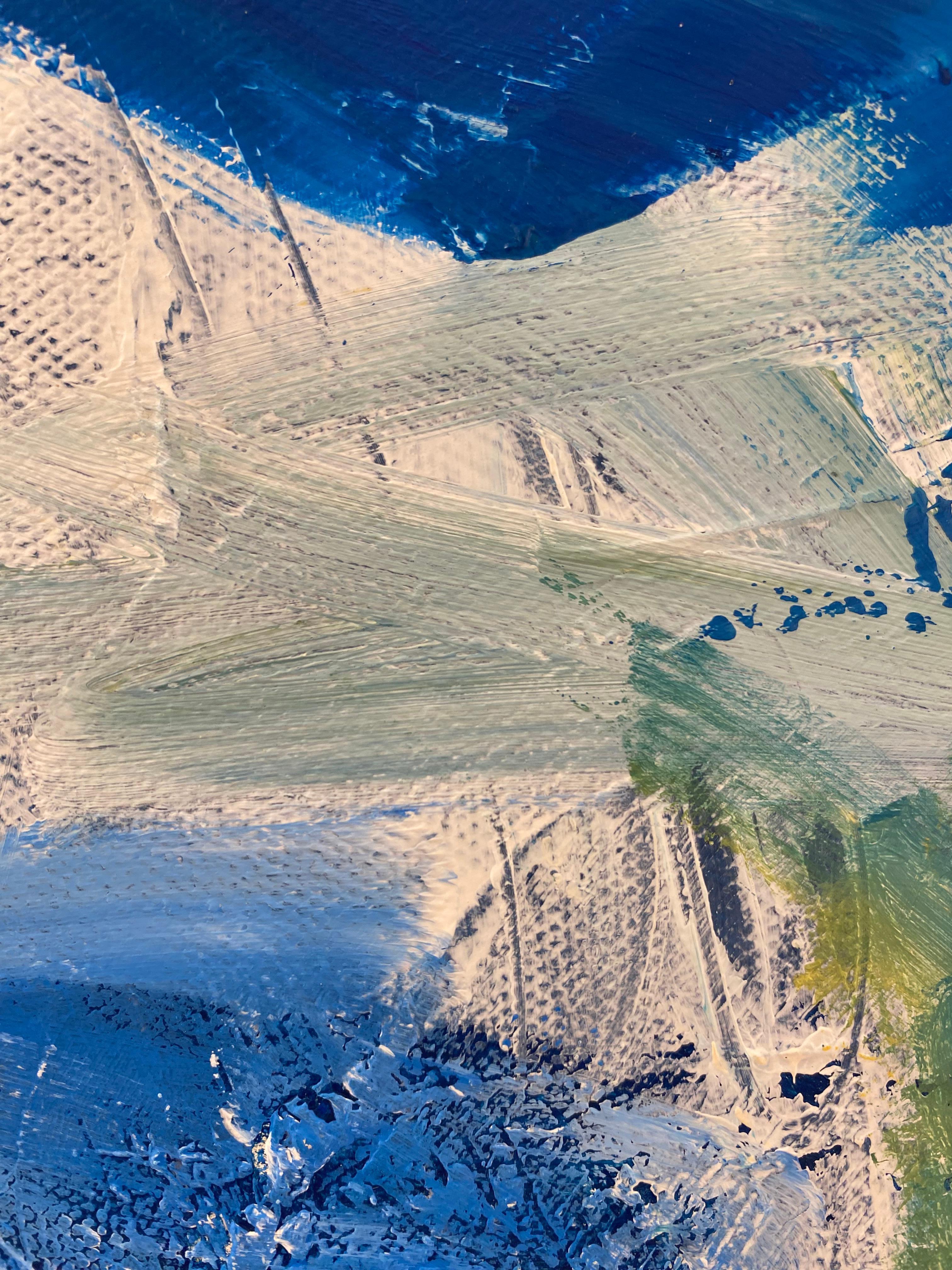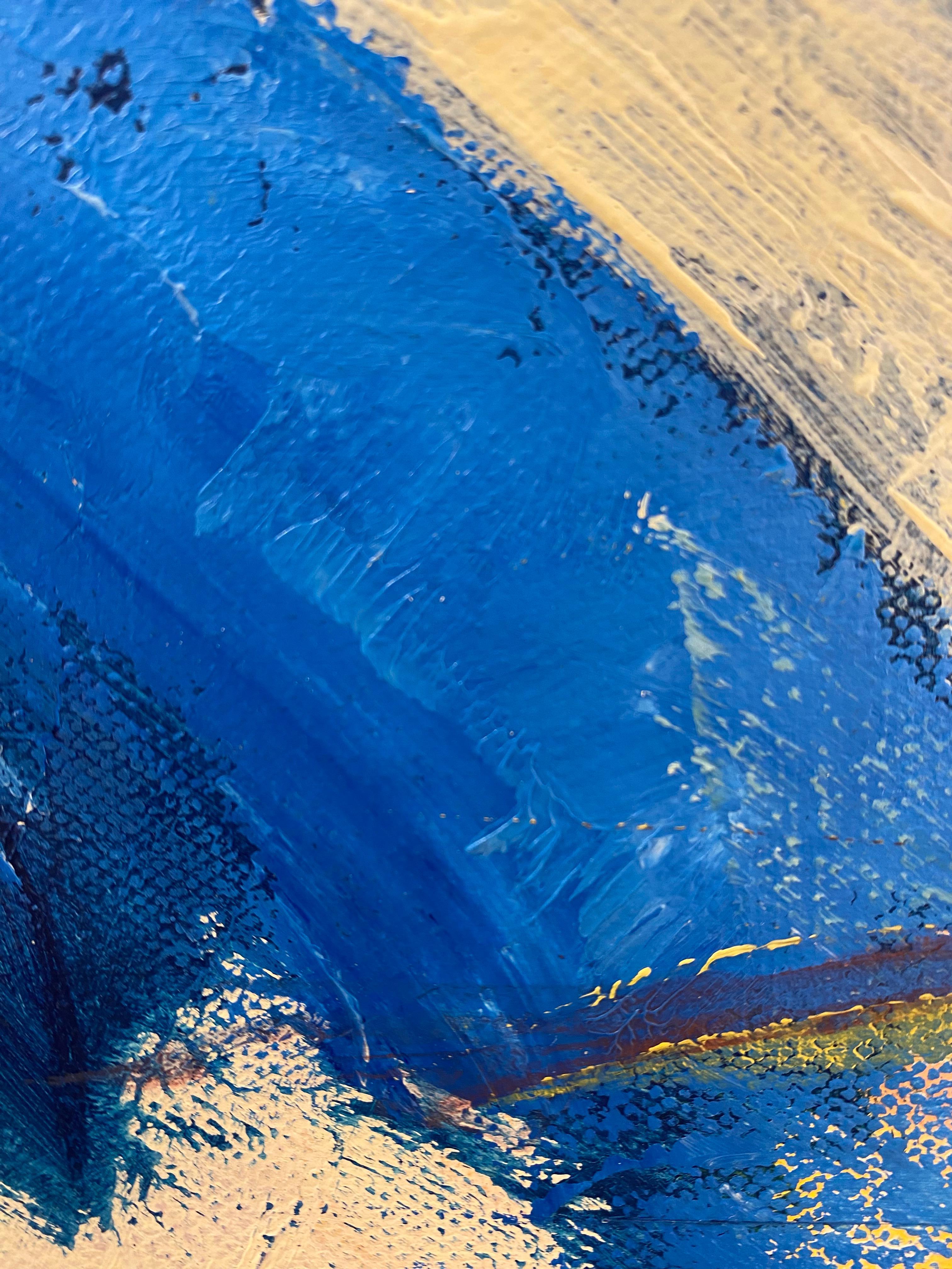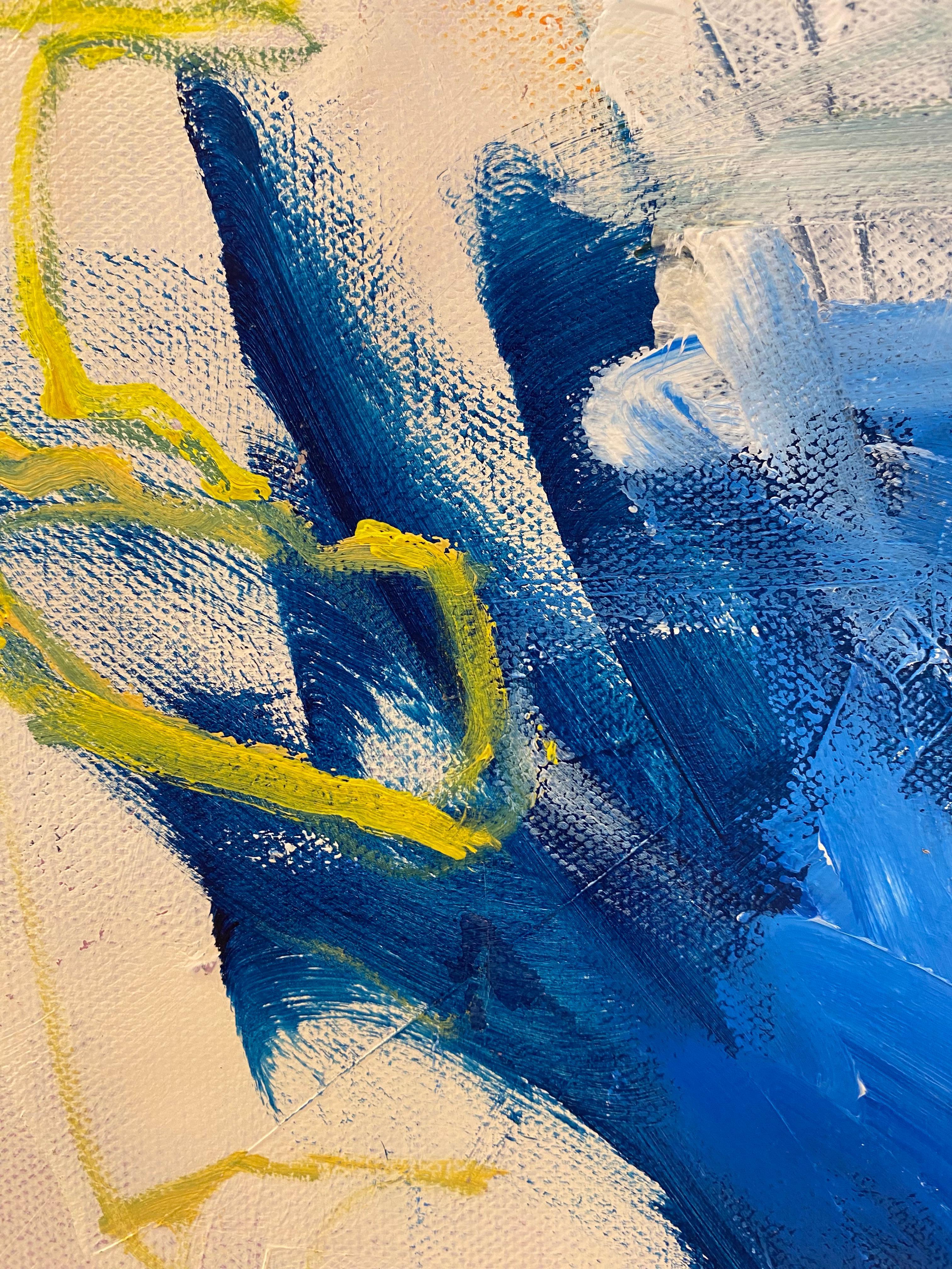 Cathy Bennigson"Falling Blues" Gestural Expression in Blue, Teal, Yellow, and White
