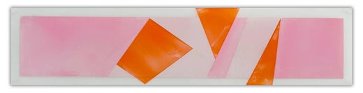 Artist Lisa Carney presents a floral abstract of vibrant crimson blooms. Part of her ongoing GeoFlora series of dynamic abstractions comprised of drips and splatters. The piece features a contrasting palette of red, light pink, orange, and gray. The summery colors suggest wildflower-covered fields and branching sea corals.