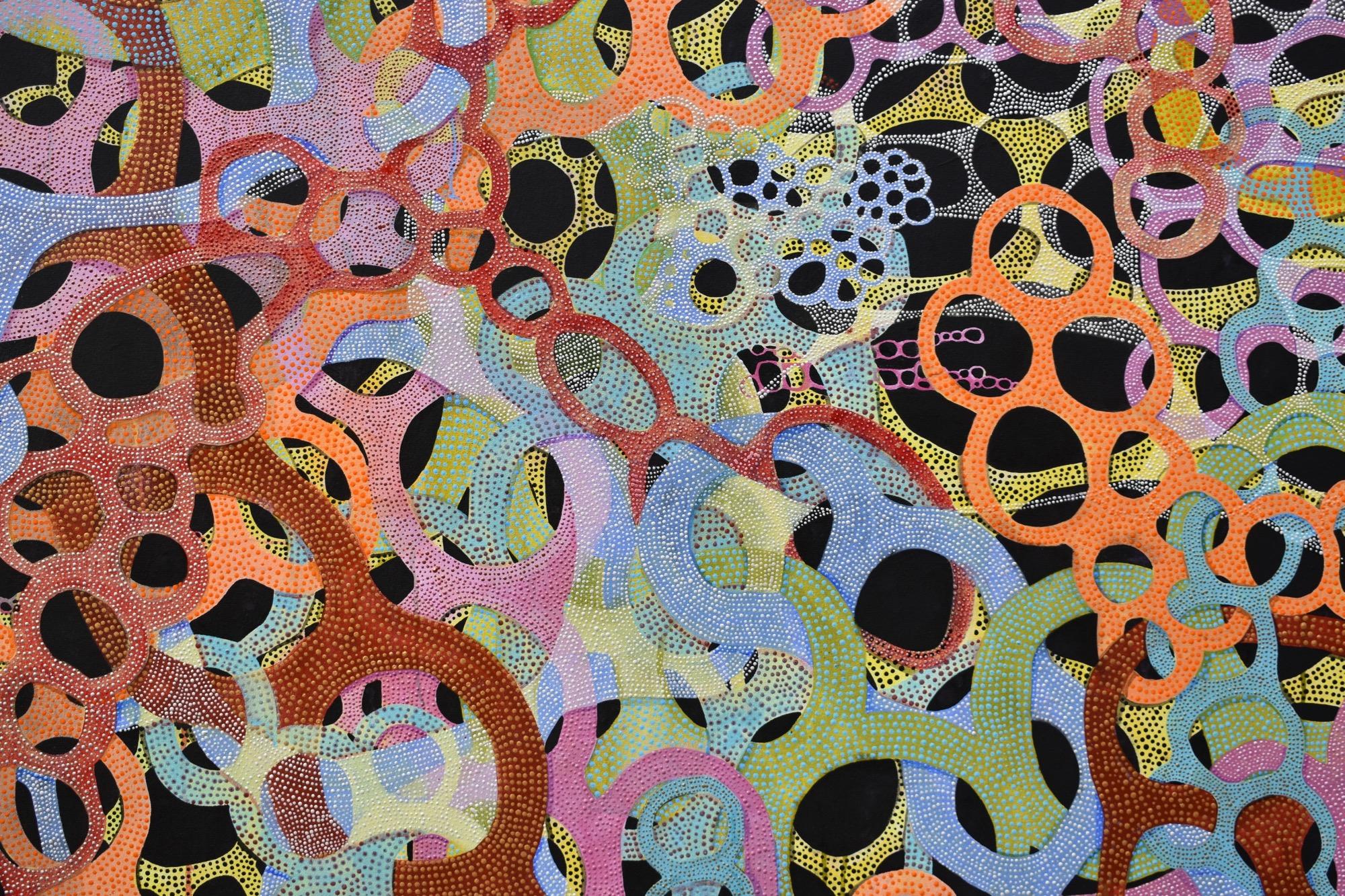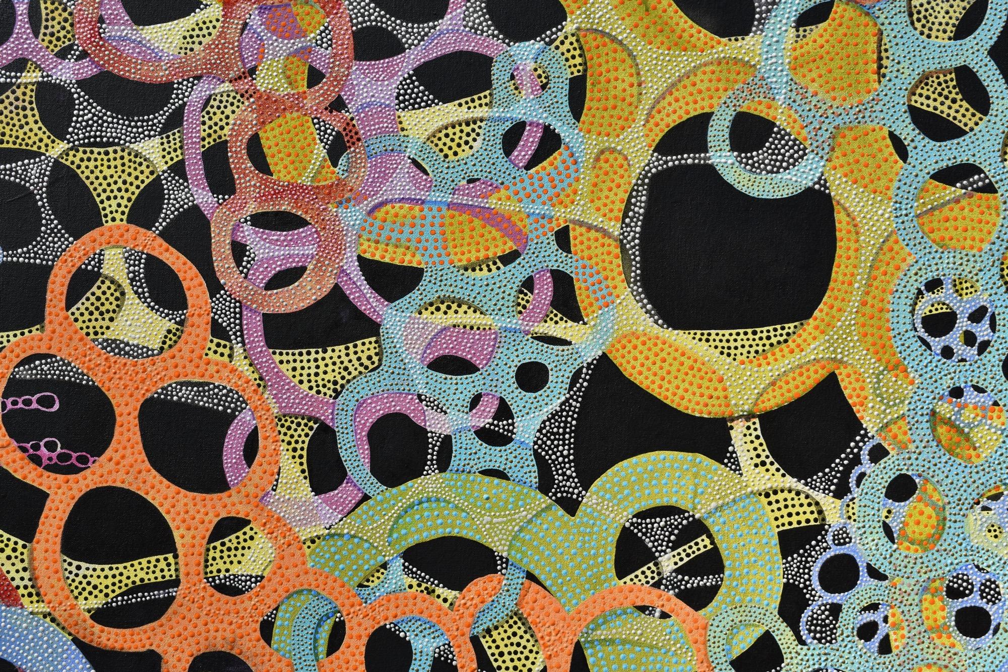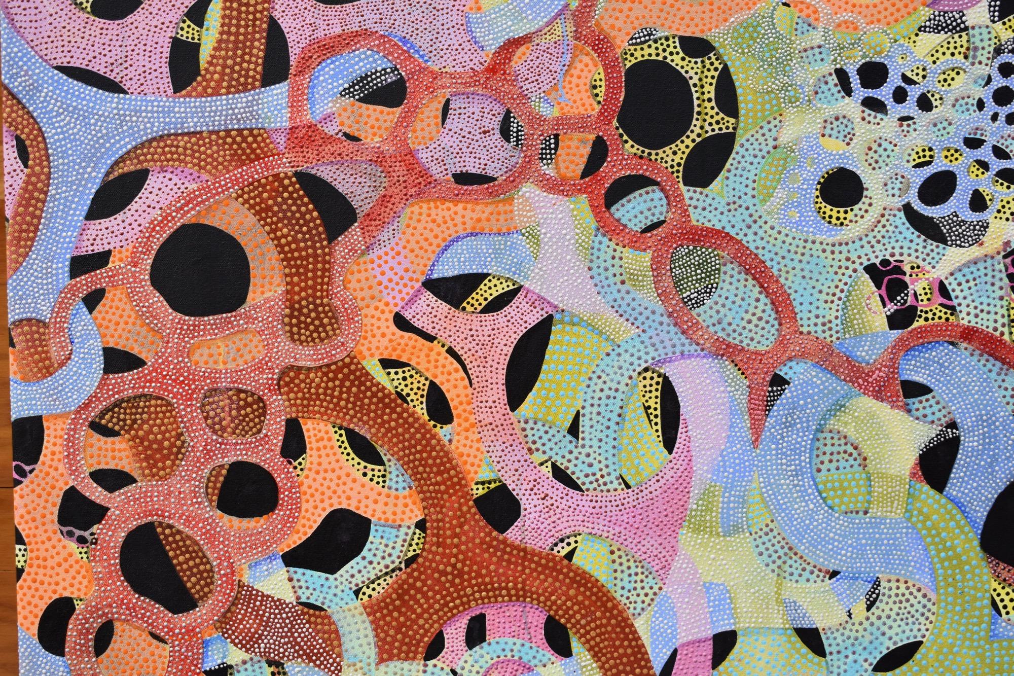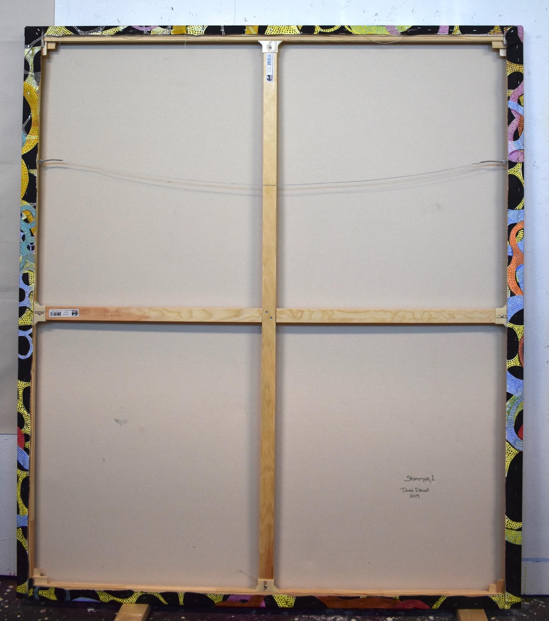 Denise Driscoll"Shimmer 1", abstract, brightly colored, black, metallic, dots, acrylic painting2019