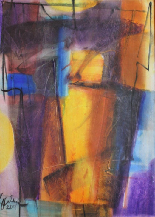 acrylic, pastel and colored pencil on cradled wood panel. 8" x 8" raw and unframed. ready to hang. :: Painting :: Abstract :: This piece comes with an official certificate of auth...