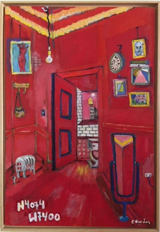 Elliot Gordon is a post-post modern Impressionist whose paintings are a metaphor for the chaos that exists in organized society. This painting is a composition of ideas brought together to create a still life. The GPS location is referenced on the painting.