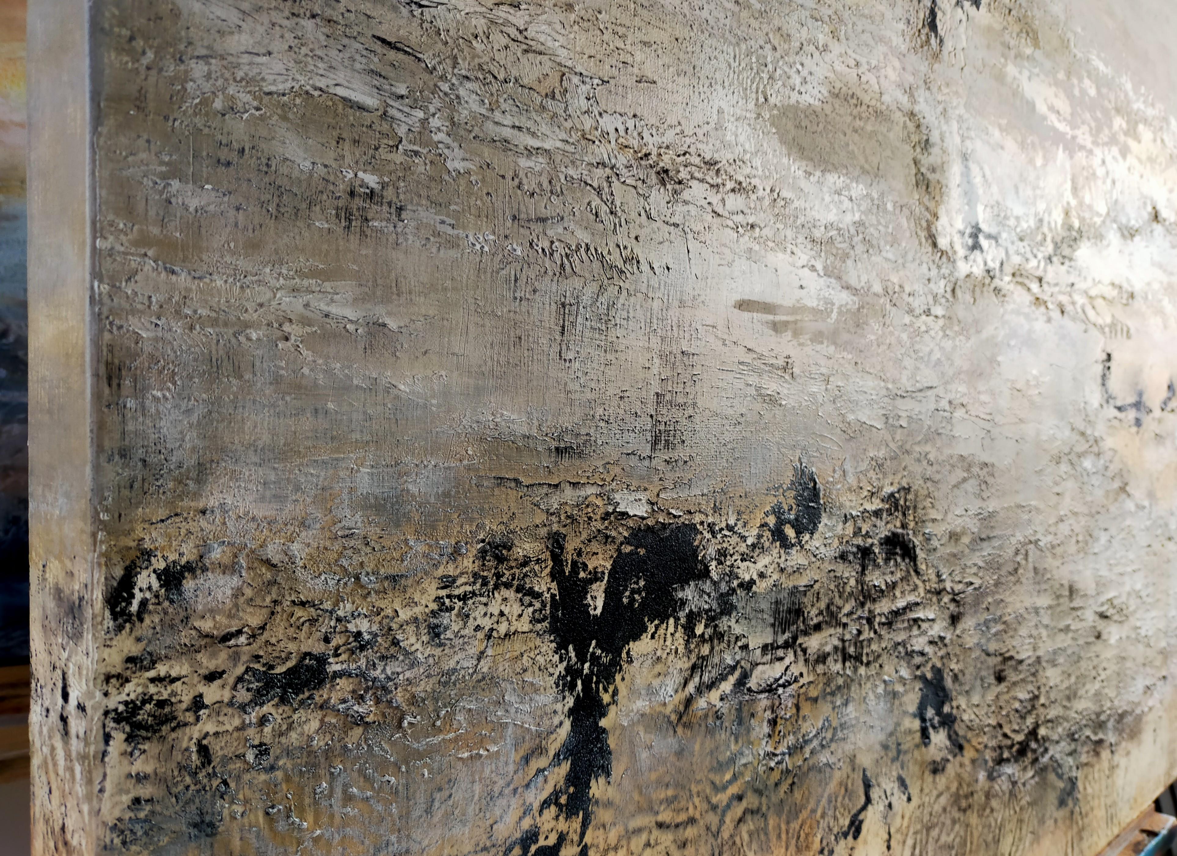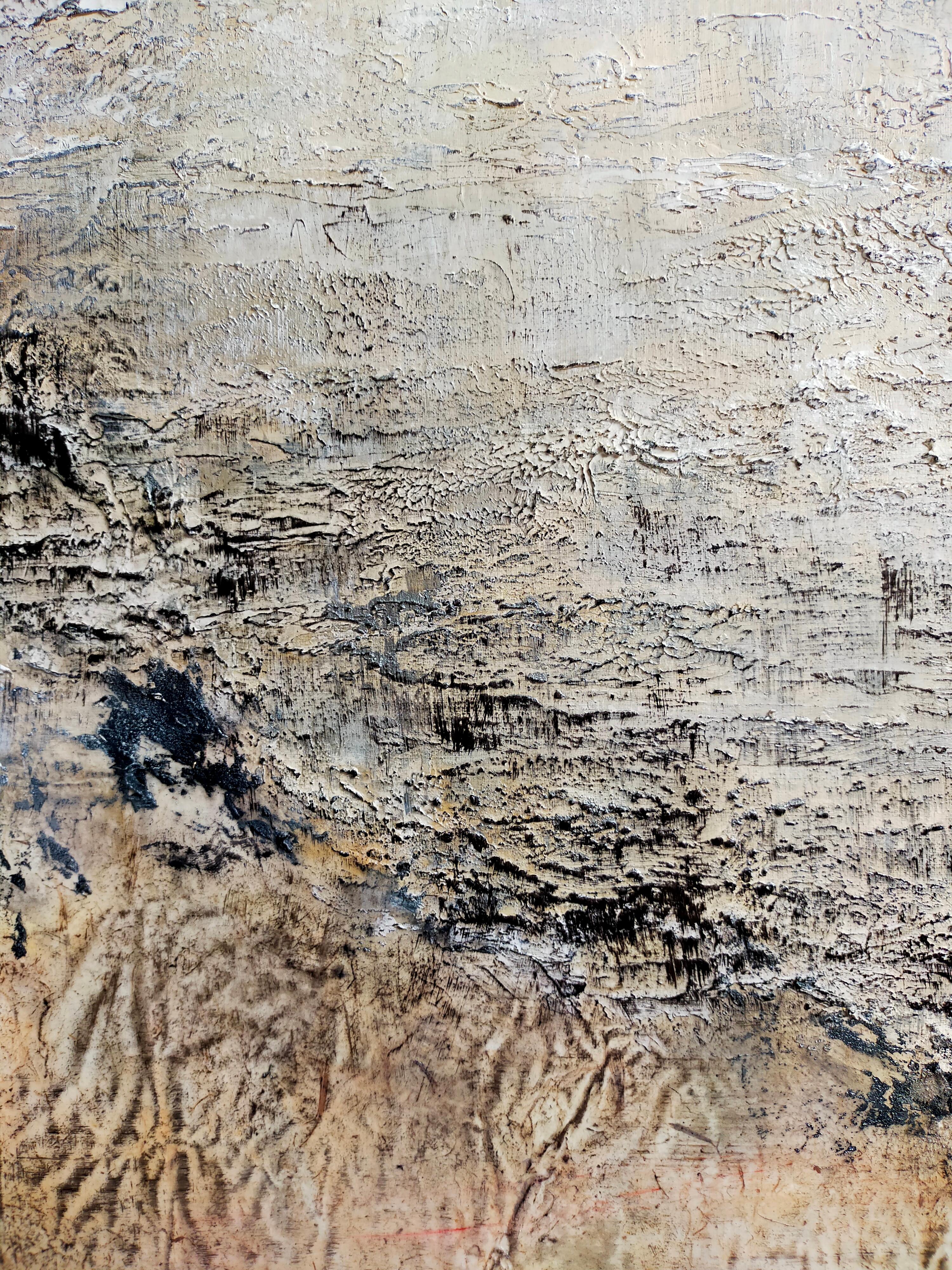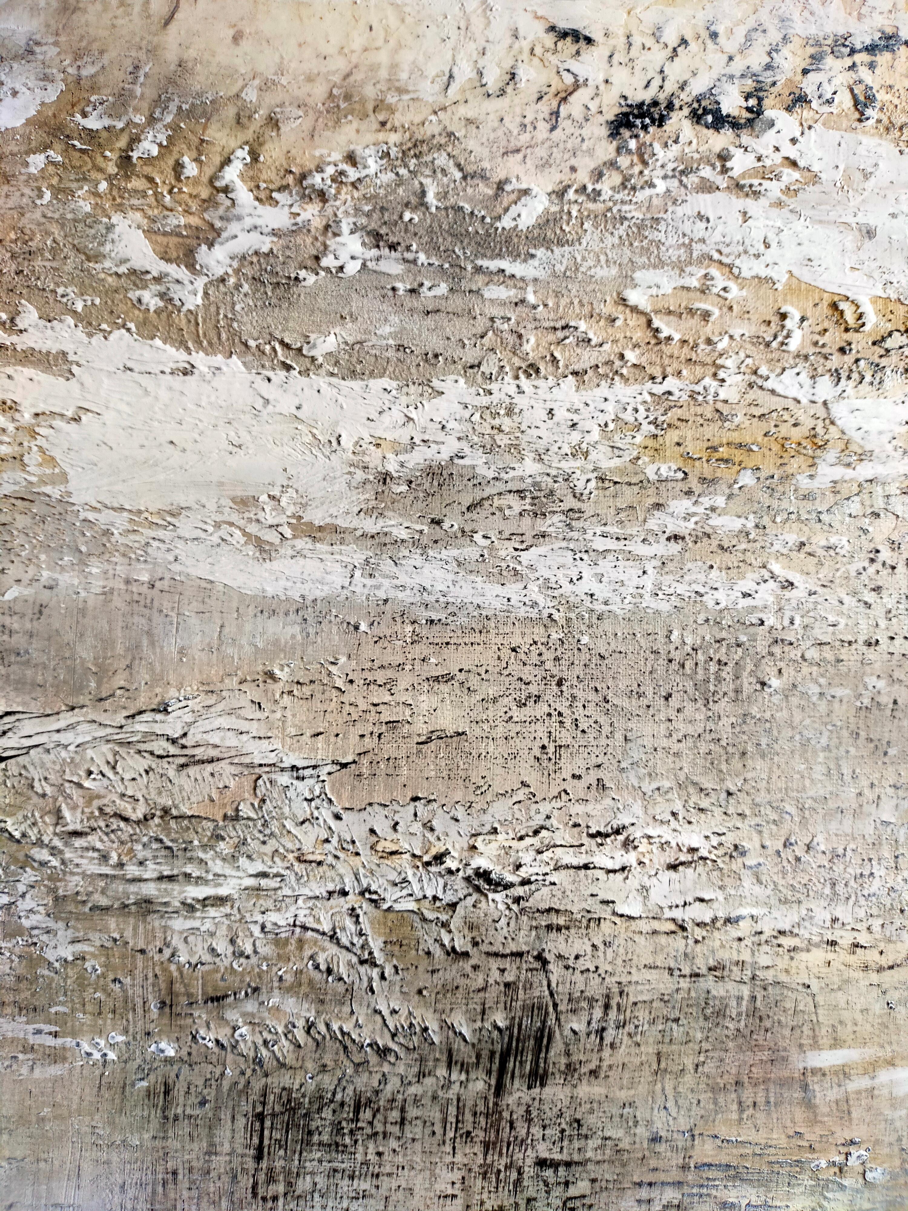 Emmanuelle Vroelant"January on the foreshore" abstract acrylic , marble, sand, 140x80cm.2023