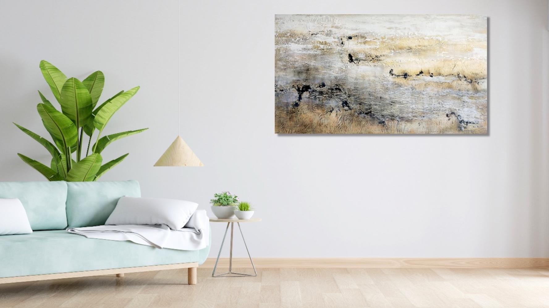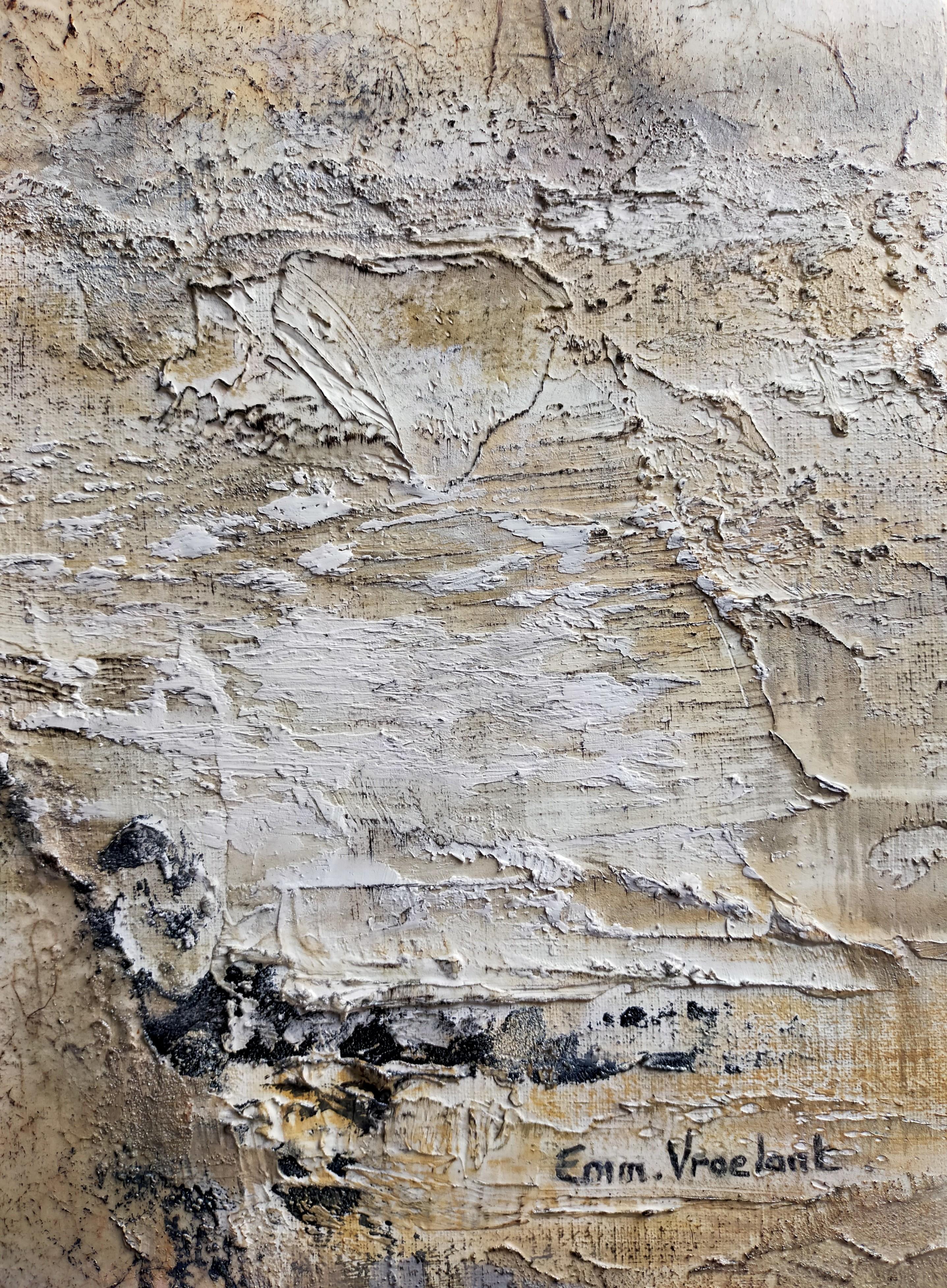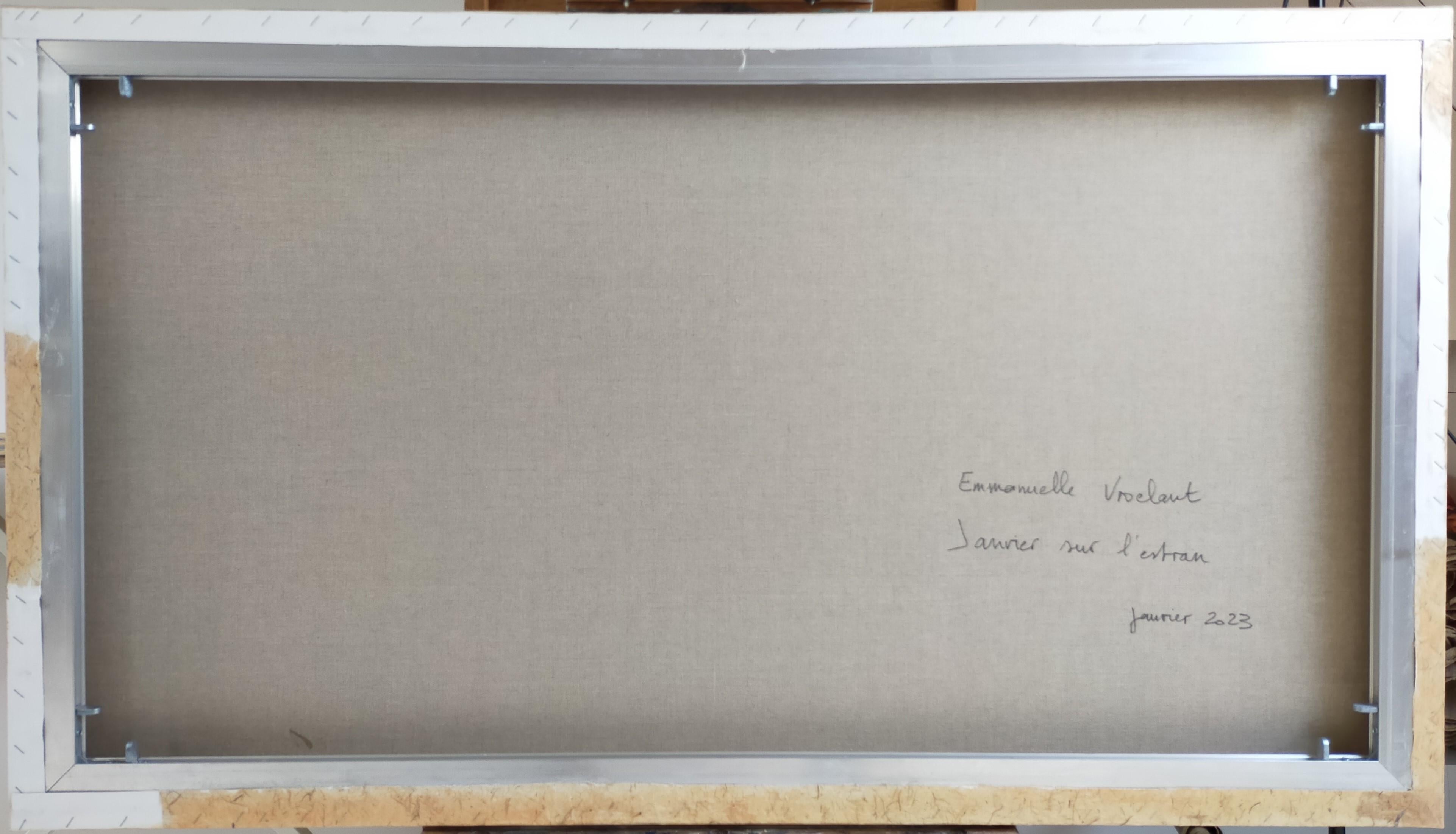 Emmanuelle Vroelant"January on the foreshore" abstract acrylic , marble, sand, 140x80cm.2023