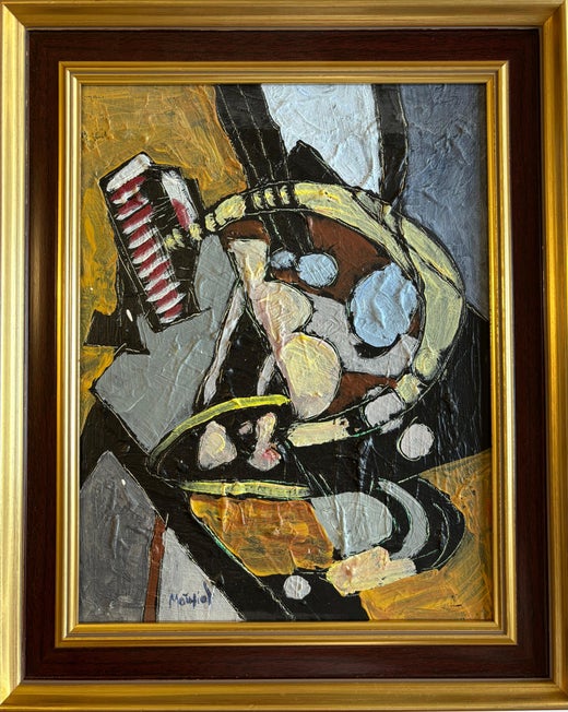 A layered cubist scene by Greg Mathias, Concert dans l’Atelier captures the energy of a musical moment ...