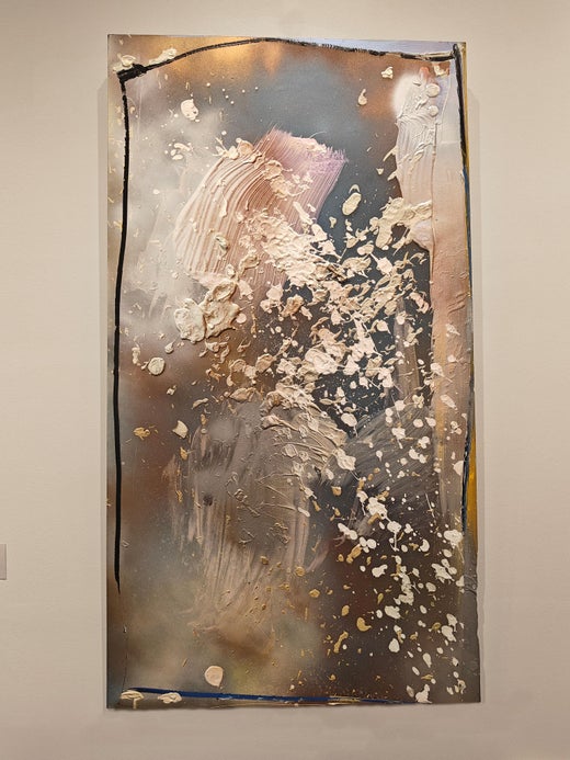 Abstract contemporary painting by Houston, TX artist Joseph Cohen. This piece features several different colors of paint layers as seen on the edges of the painting. It is finished w...