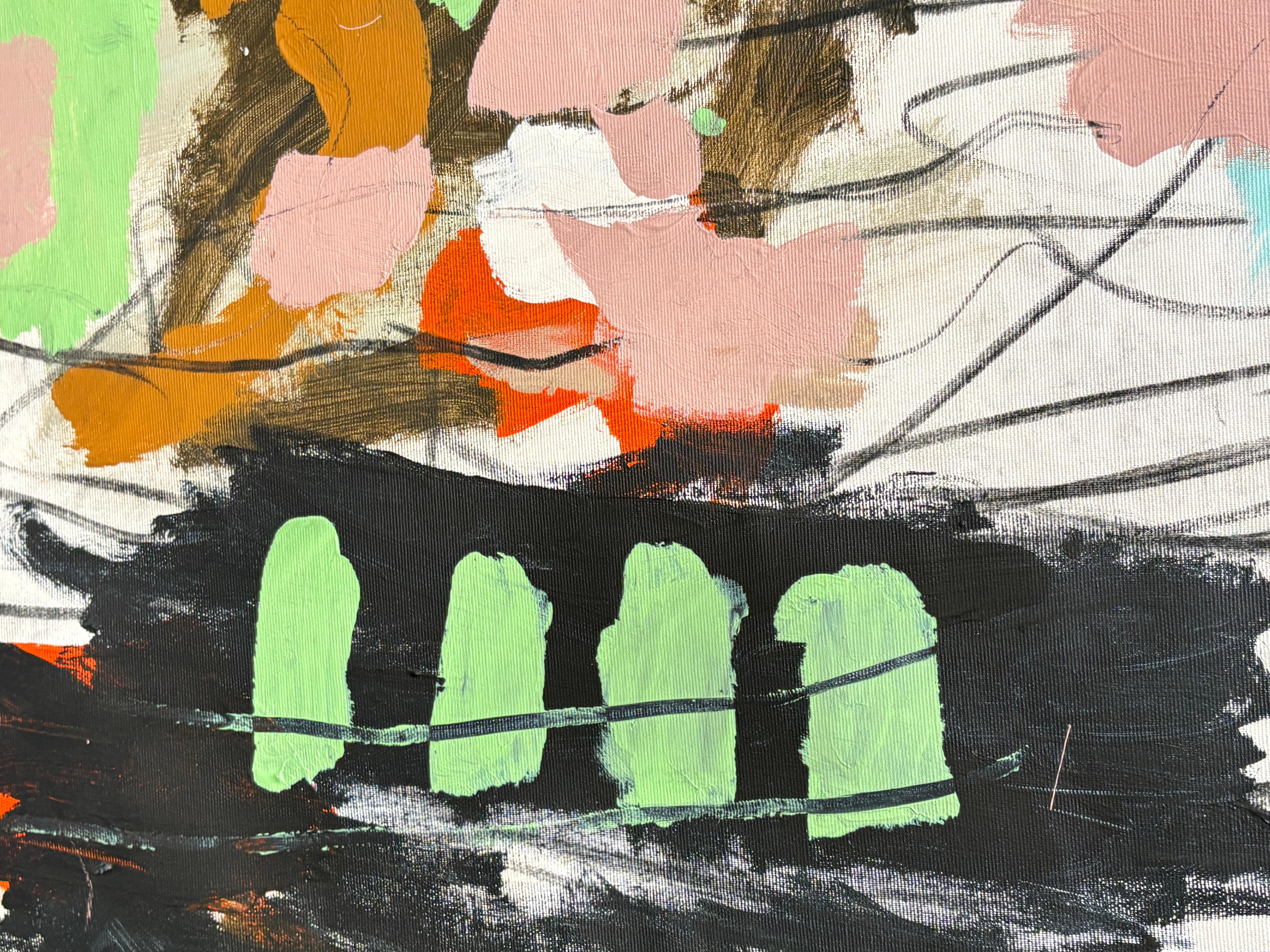 "Untitled" - Large Orange, Black, and Pink Contemporary Layered Abstract Artwork