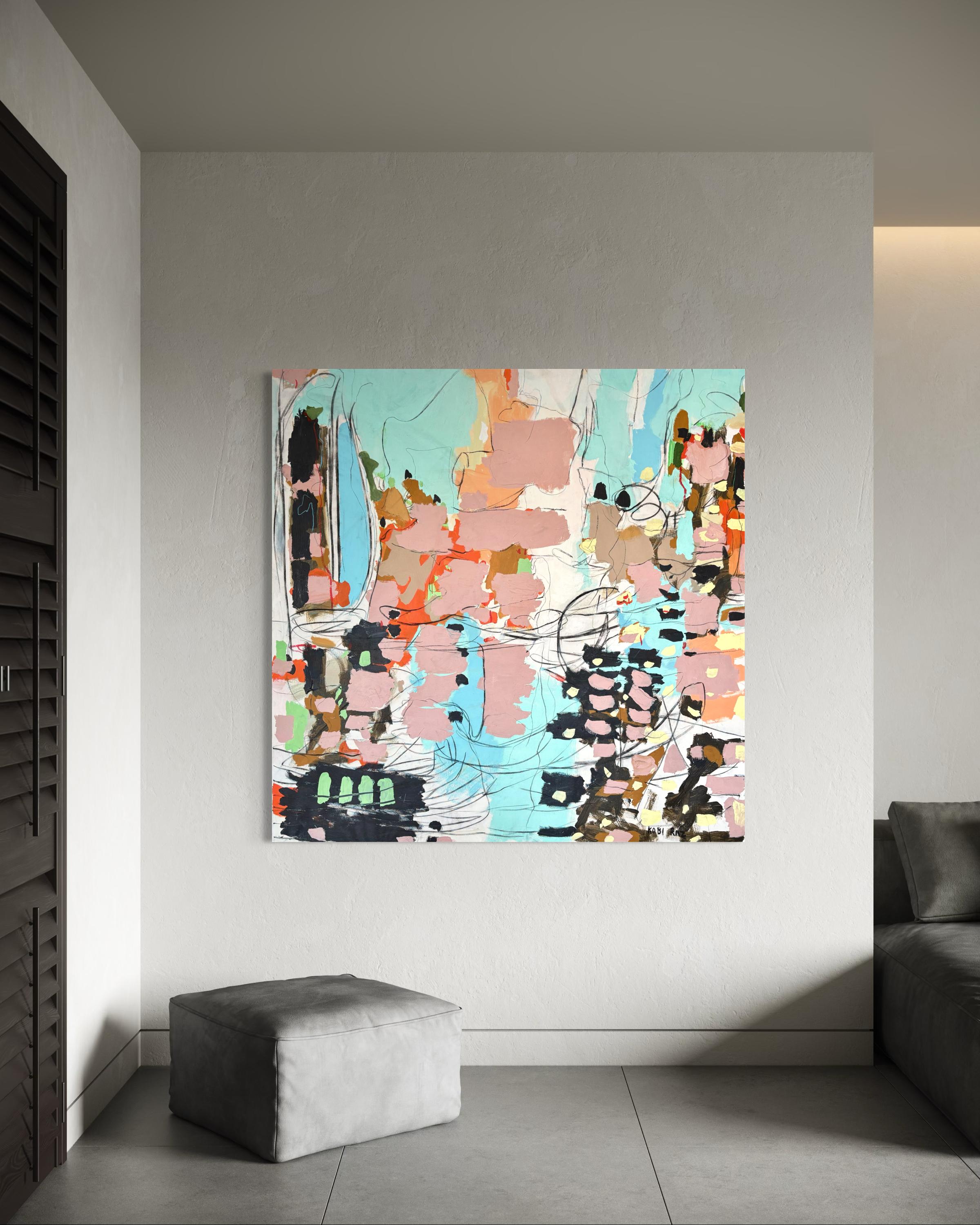 Kobi Raz"Melody" - Large Modern Bright and Colorful Abstract in Pinks, Blues, and Black2025
