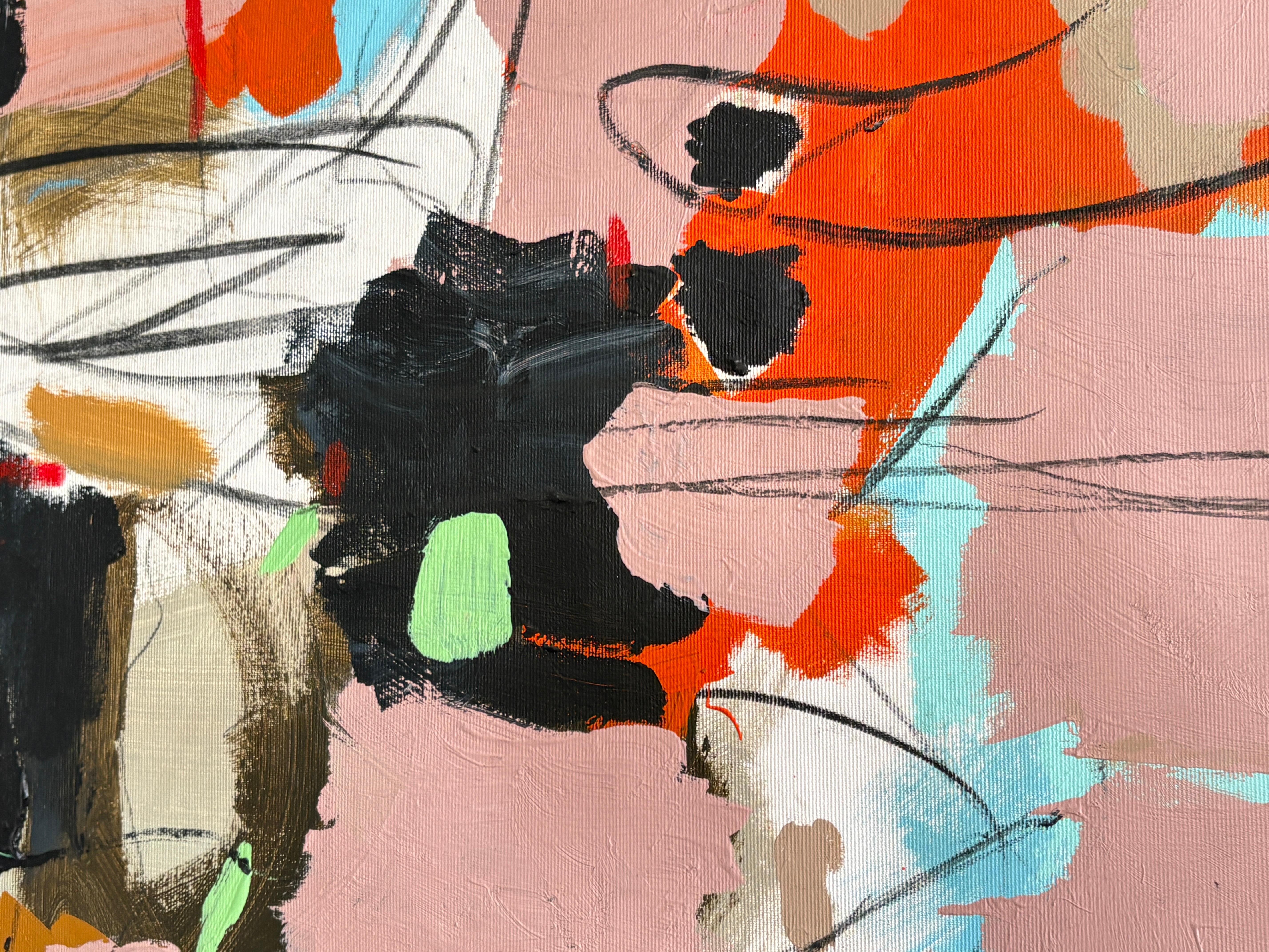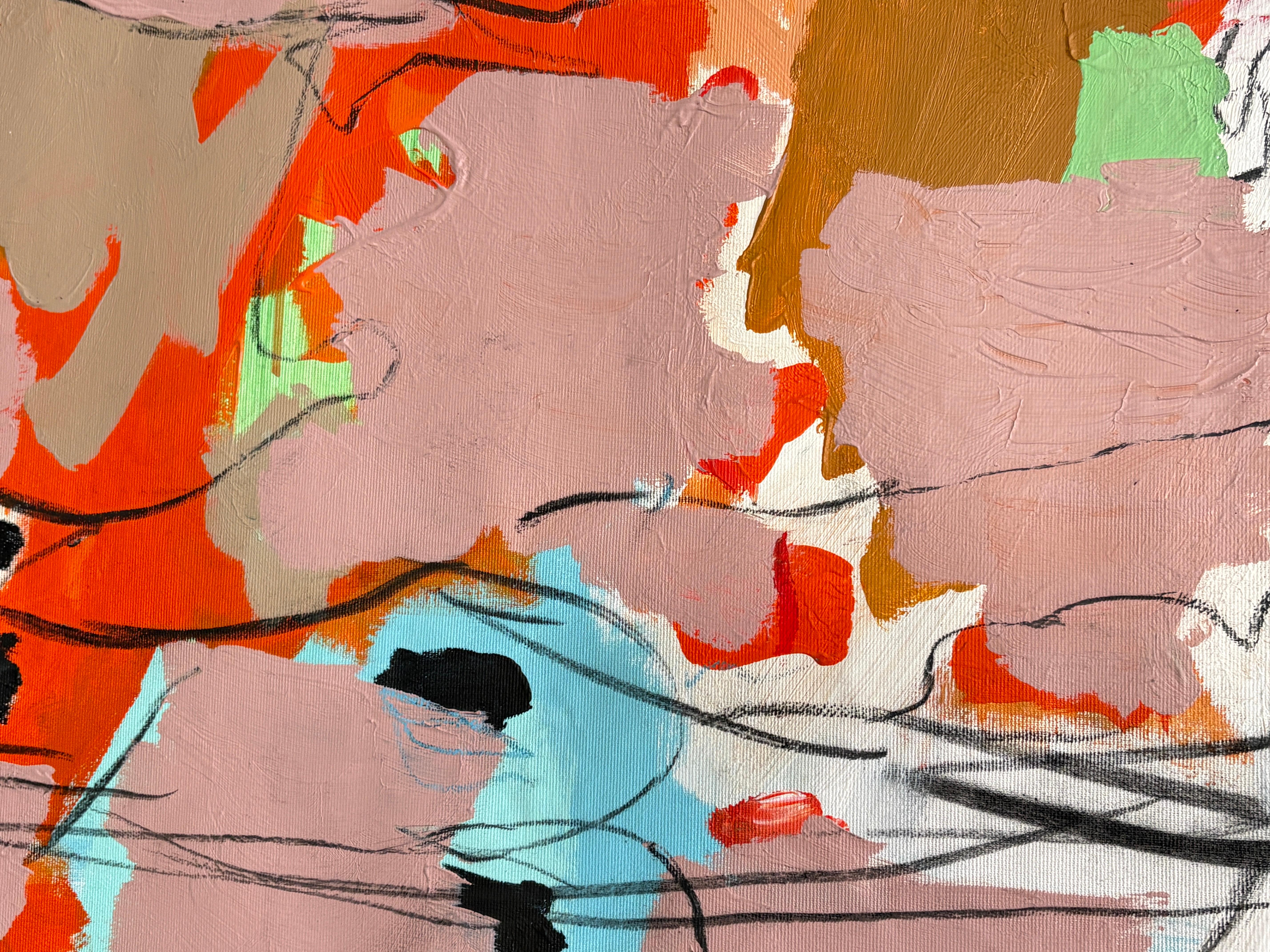 Abstract Painting, Bright Colors, Statement, Mixed Media, Pink, Flowing