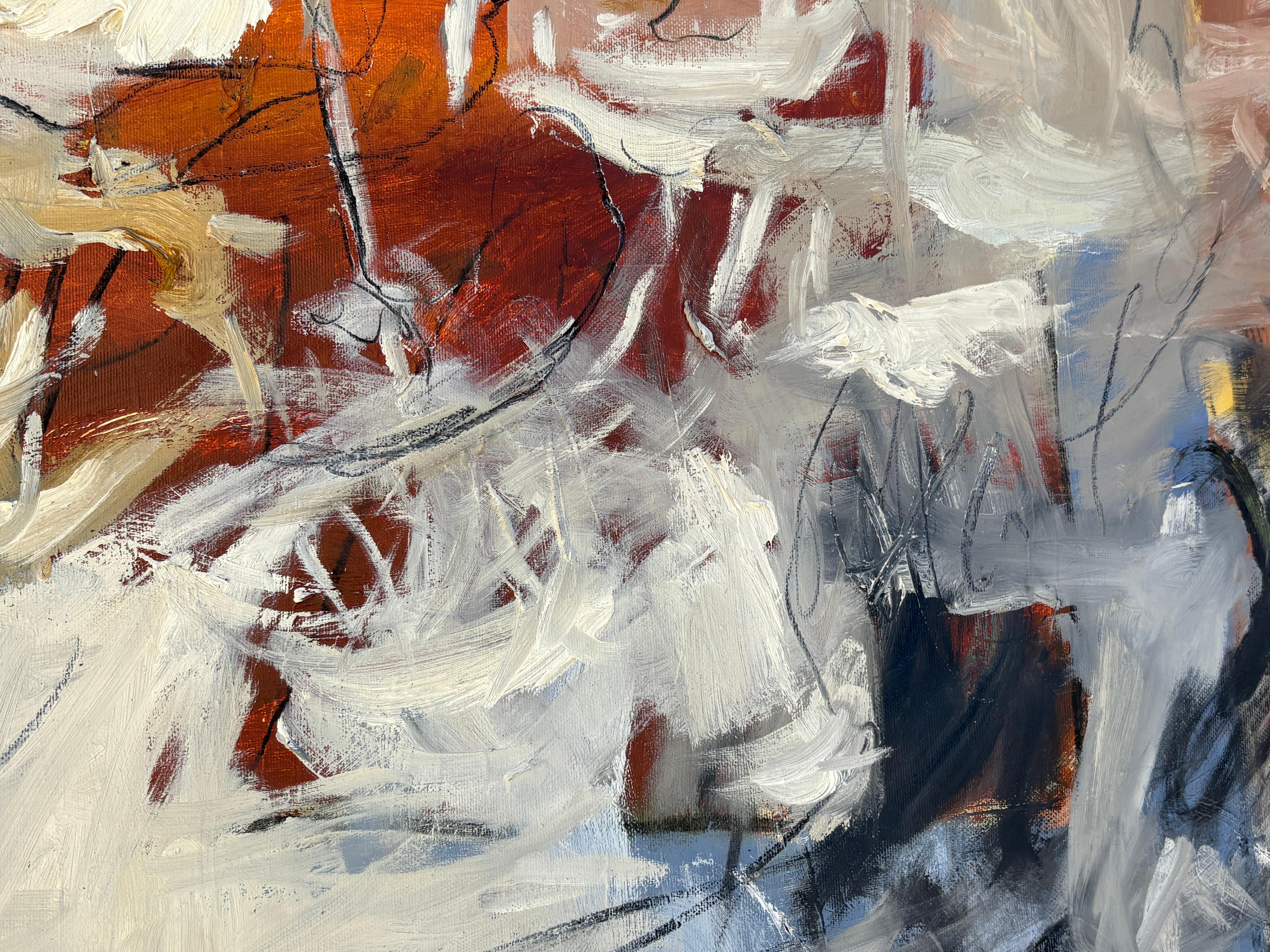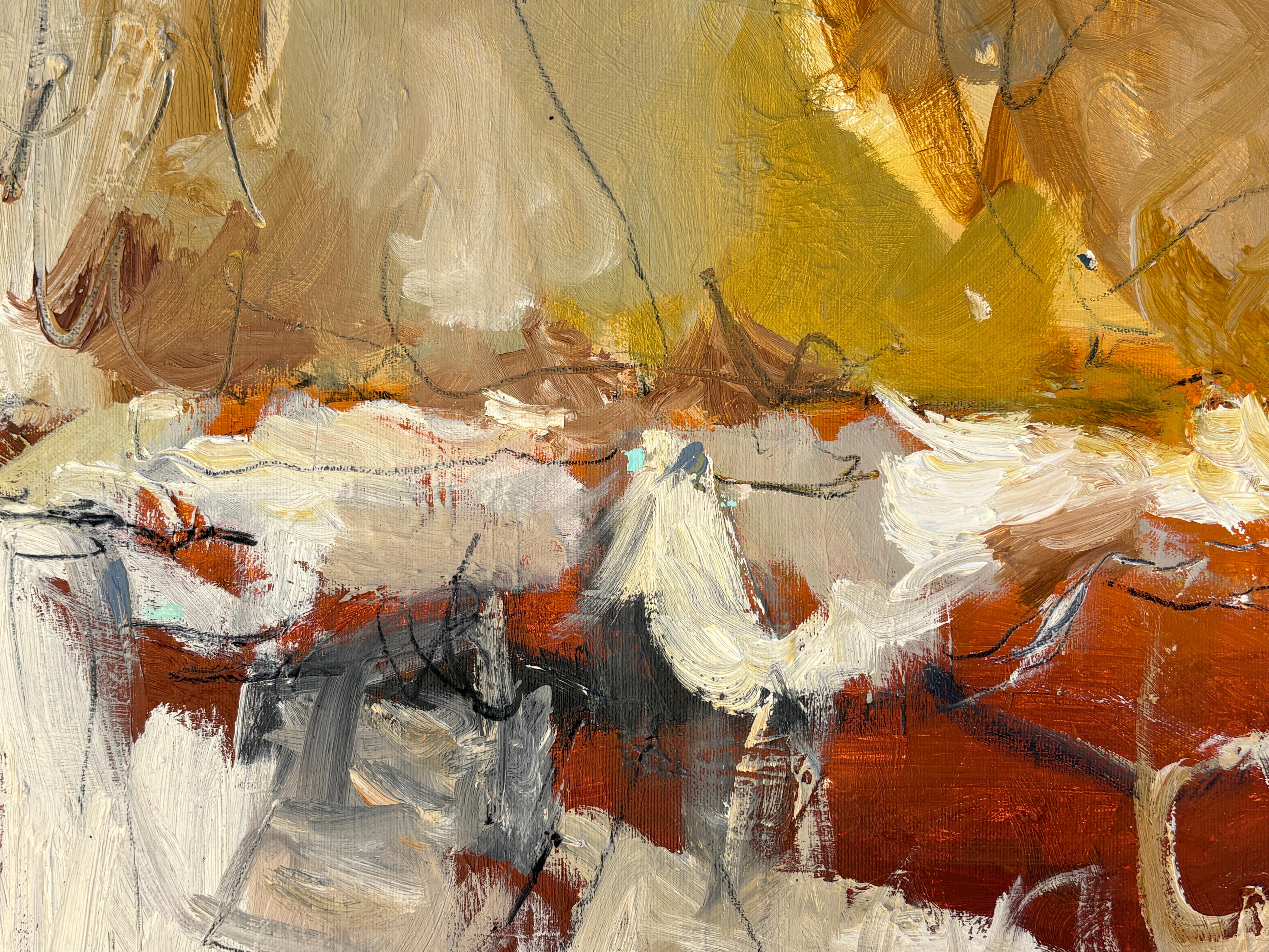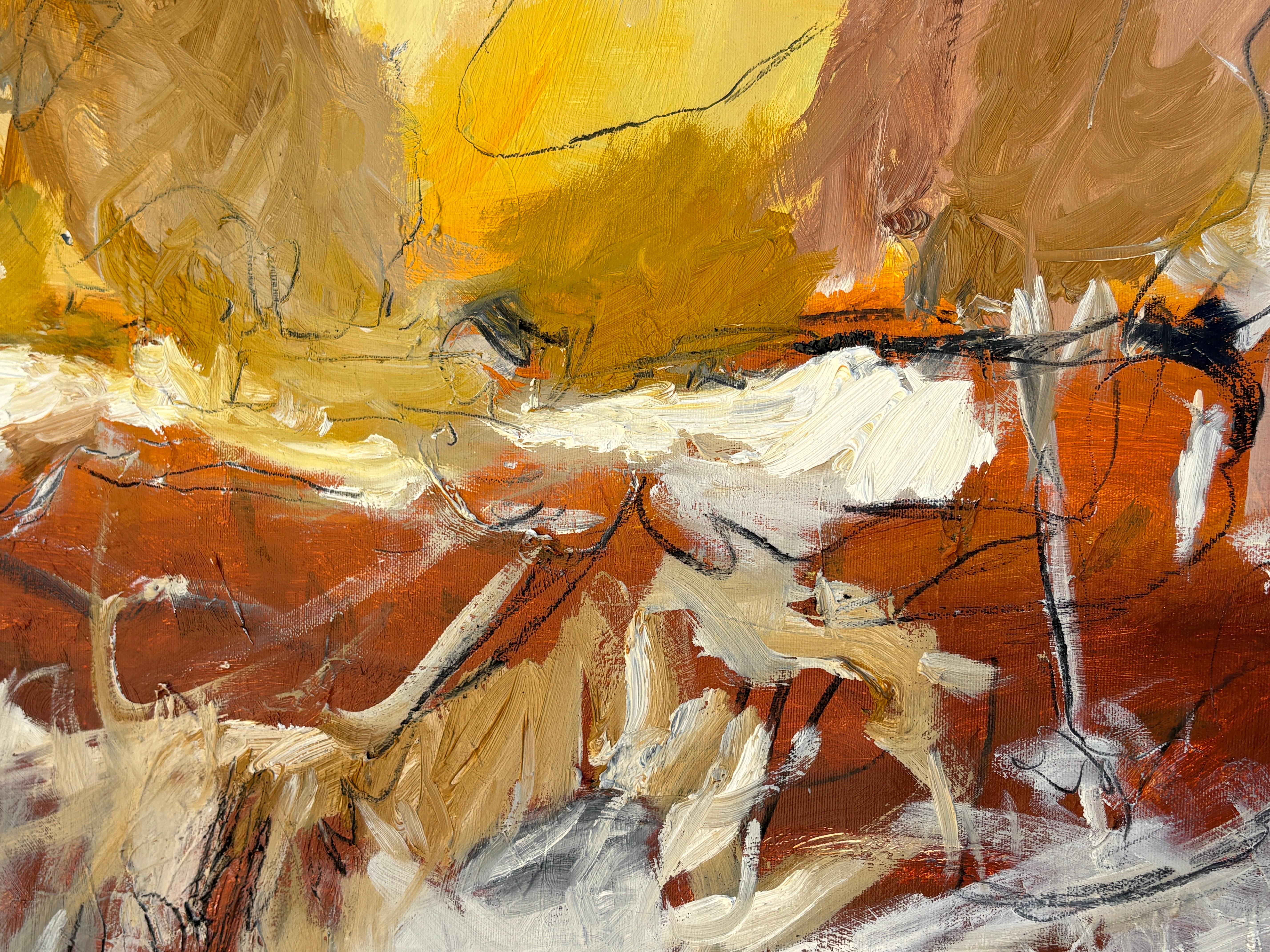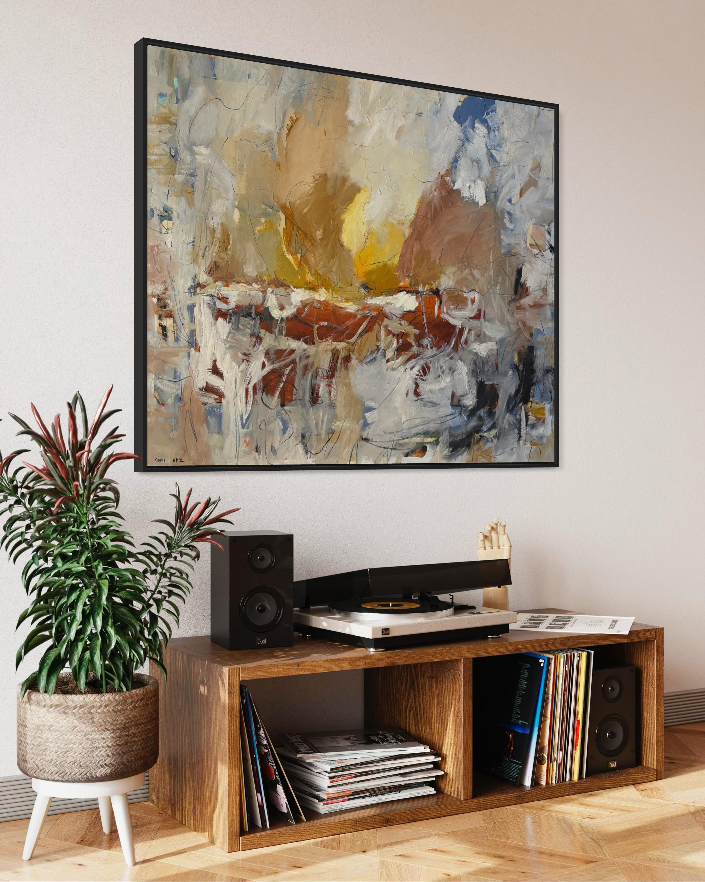Kobi Raz explores the expressive power of color and movement through a richly textured composition. Swaths of ochre, sienna, and white converge with gestural marks and layered brushwork, creating a visual rhythm that feels both spontaneous and intentional. The painting evokes the shifting energy of nature—light, land, and atmosphere blending in a dynamic harmony. Raz’s use of abstraction conveys emotion through texture and tone rather than form, drawing the viewer into a deeply atmospheric experience. This work will resonate with collectors who appreciate contemporary abstraction, expressive landscapes, and modern paintings that bridge gesture and serenity.