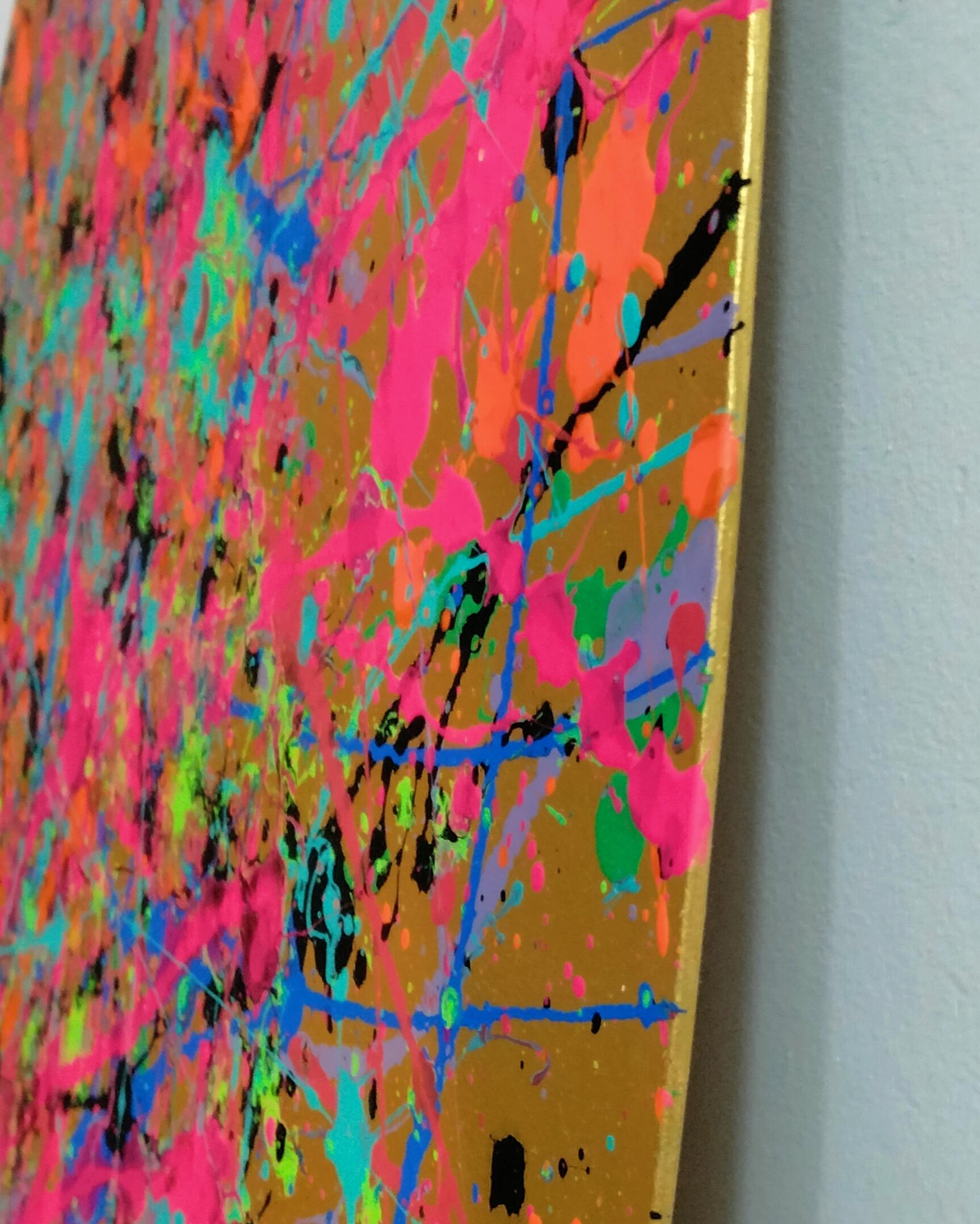 Series "Infinite Flight" yellow, blue, pink, white, colourful Pollock’s style