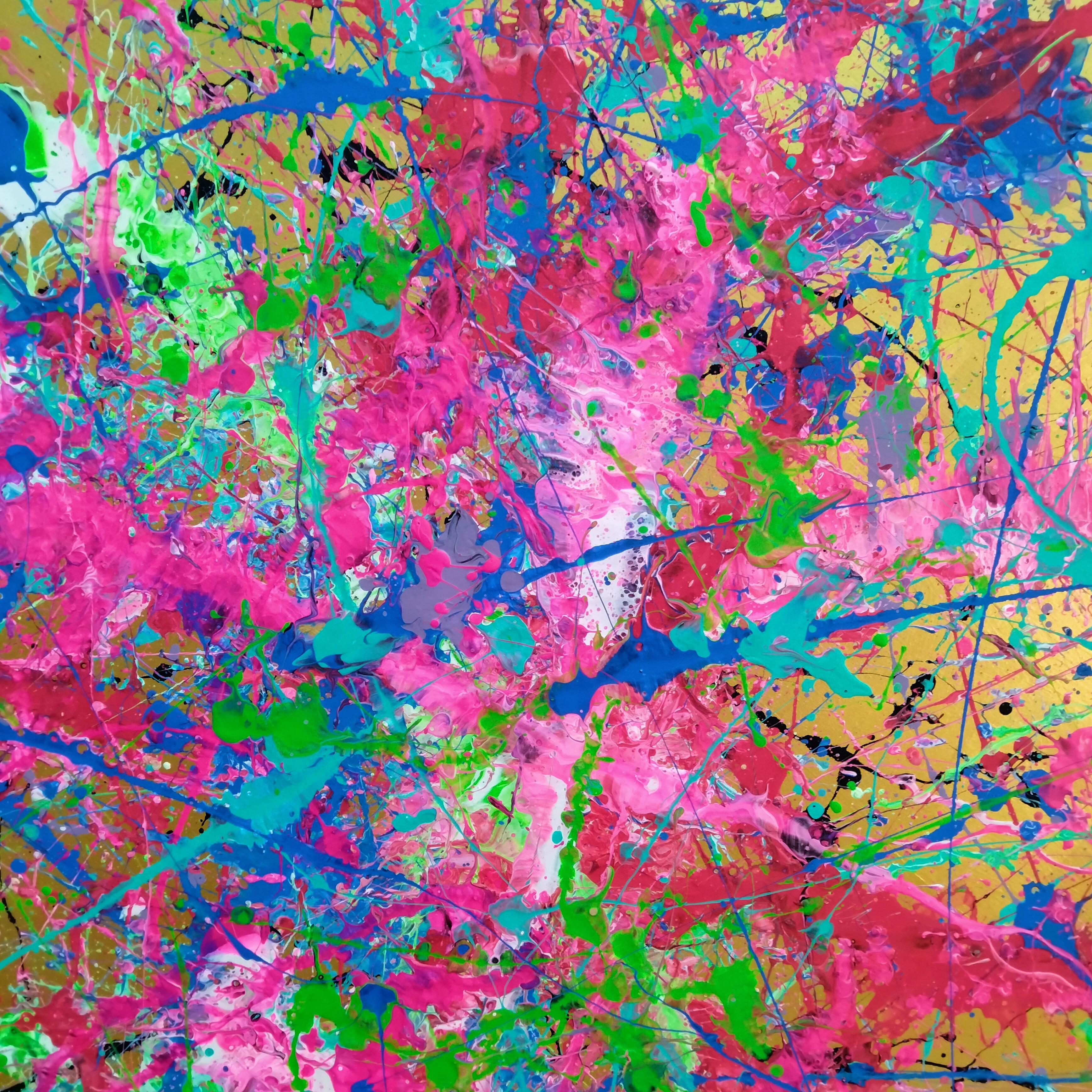 Series "Infinite Flight" yellow, blue, pink, white, colourful Pollock’s style