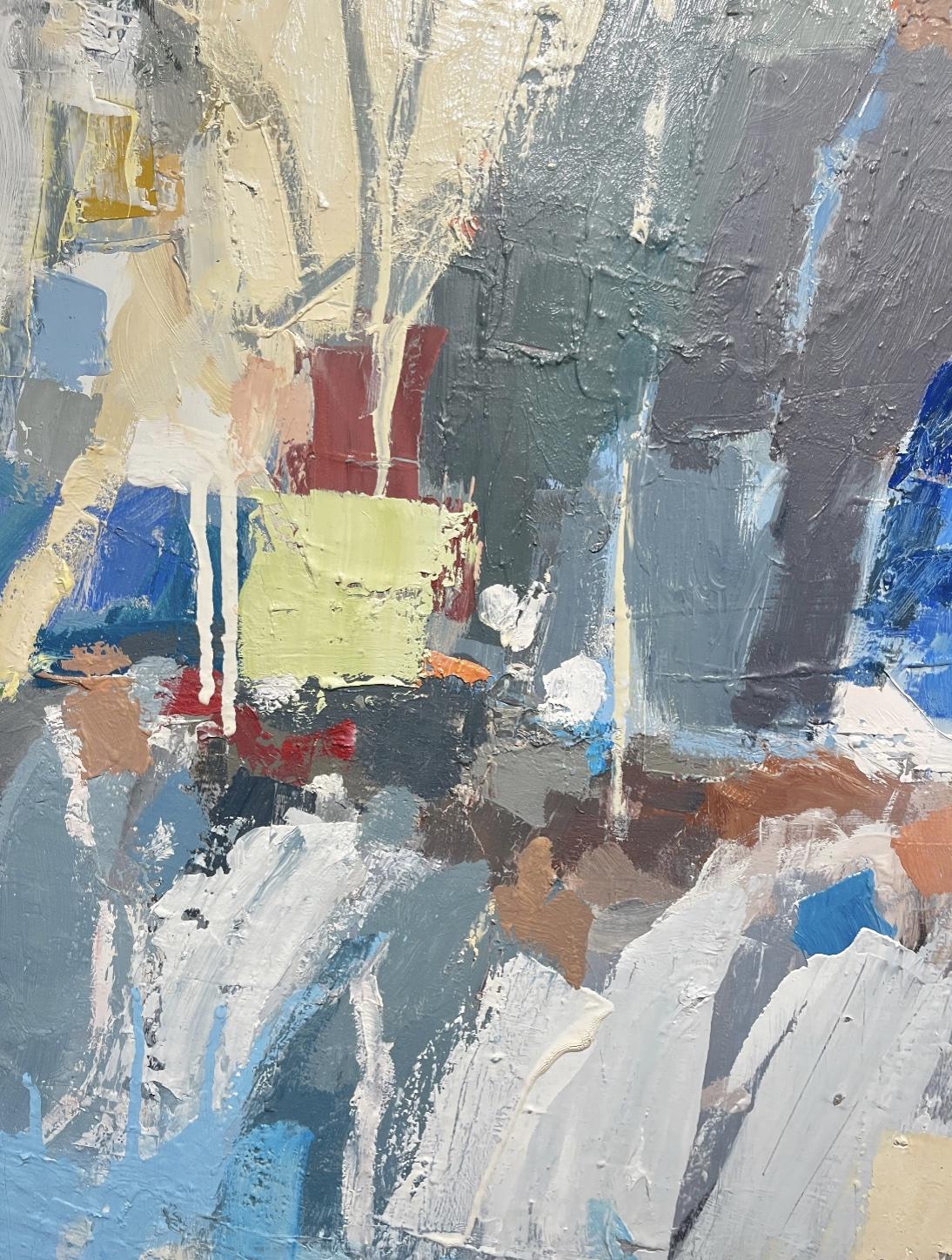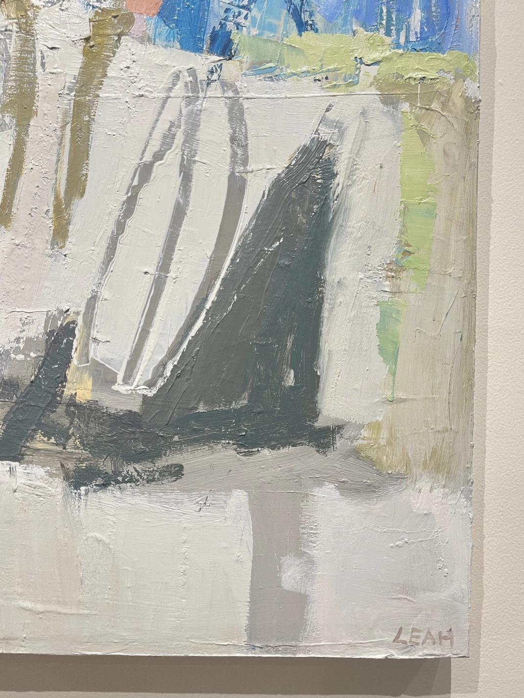 "Amalfi 4" abstract oil painting in shades of blue, green, red and white
